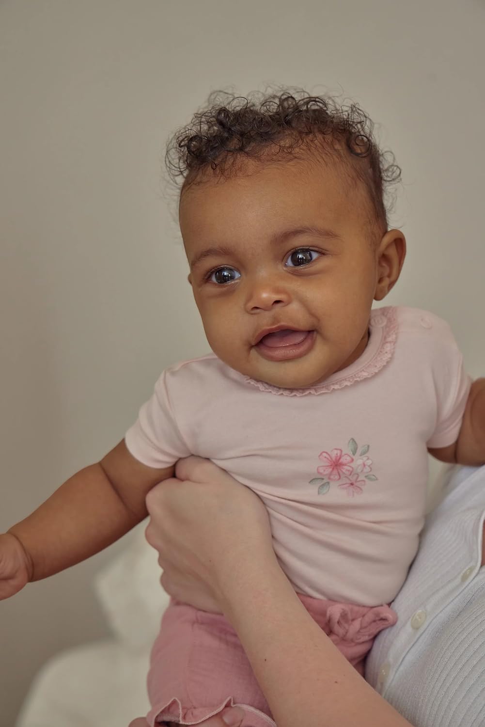 Dieser süße Kurzarm-Body in sanftem Rosaton ist aus wunderbar weicher Baumwolle (Bio) gefertigt.