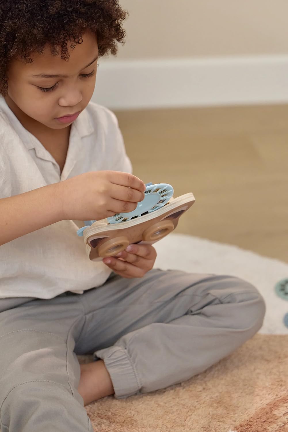 Aus Holz und robustem Plastik gefertigt, mit sanften Farben und einem freundlichen Design.
