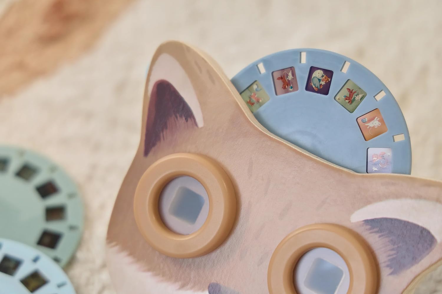 Gehen Sie gemeinsam auf Abenteuer mit diesem hölzernen Geschichtengucker in Form eines Fuchses.