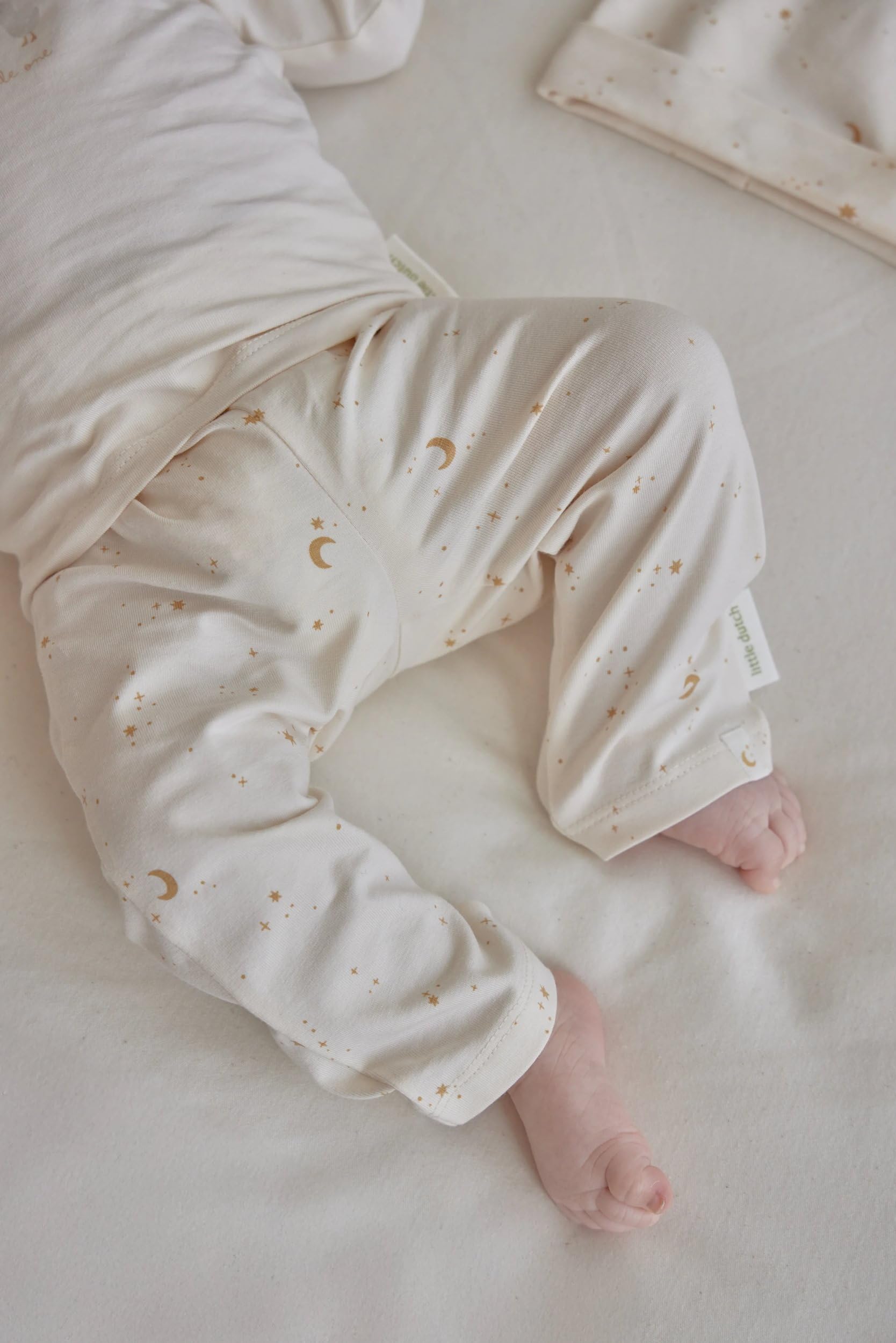 Das weiche Shirt, die Hose mit feinem Taillenbund, die Mütze und das Schmusetuch sind aus Baumwolle (Bio) gefertigt und fühlen sich wunderbar auf der zarten Babyhaut an.