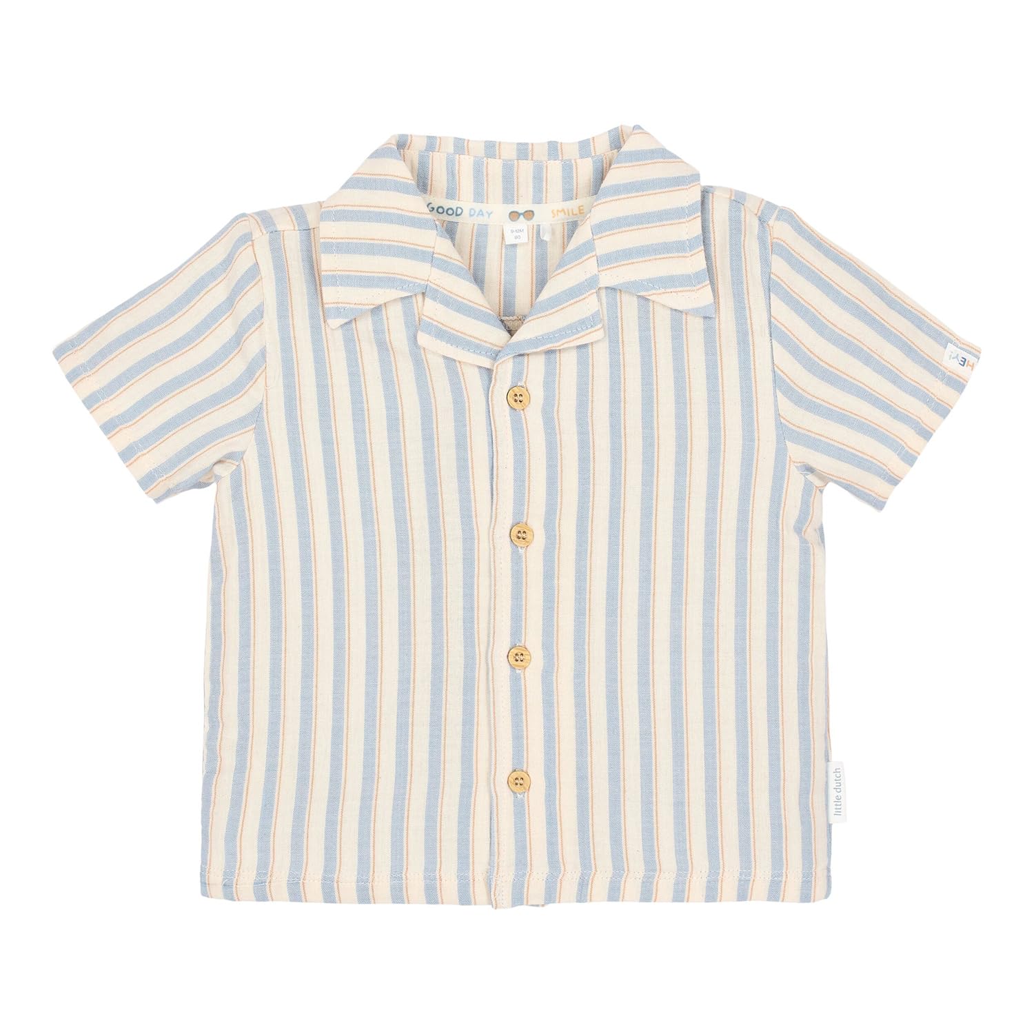 Frisch, luftig und farbenfroh. Dieses Hemd mit kurzen Ärmeln besteht aus weichem Musselinstoff und hat ein fröhliches Streifenmuster in mehreren Farben.