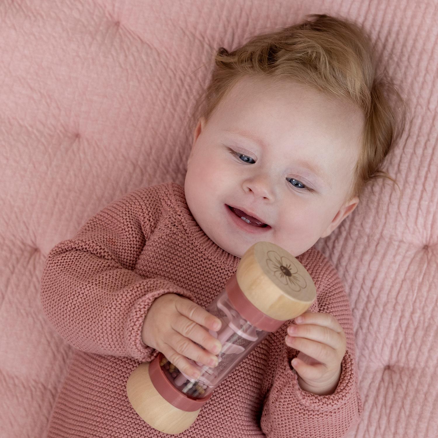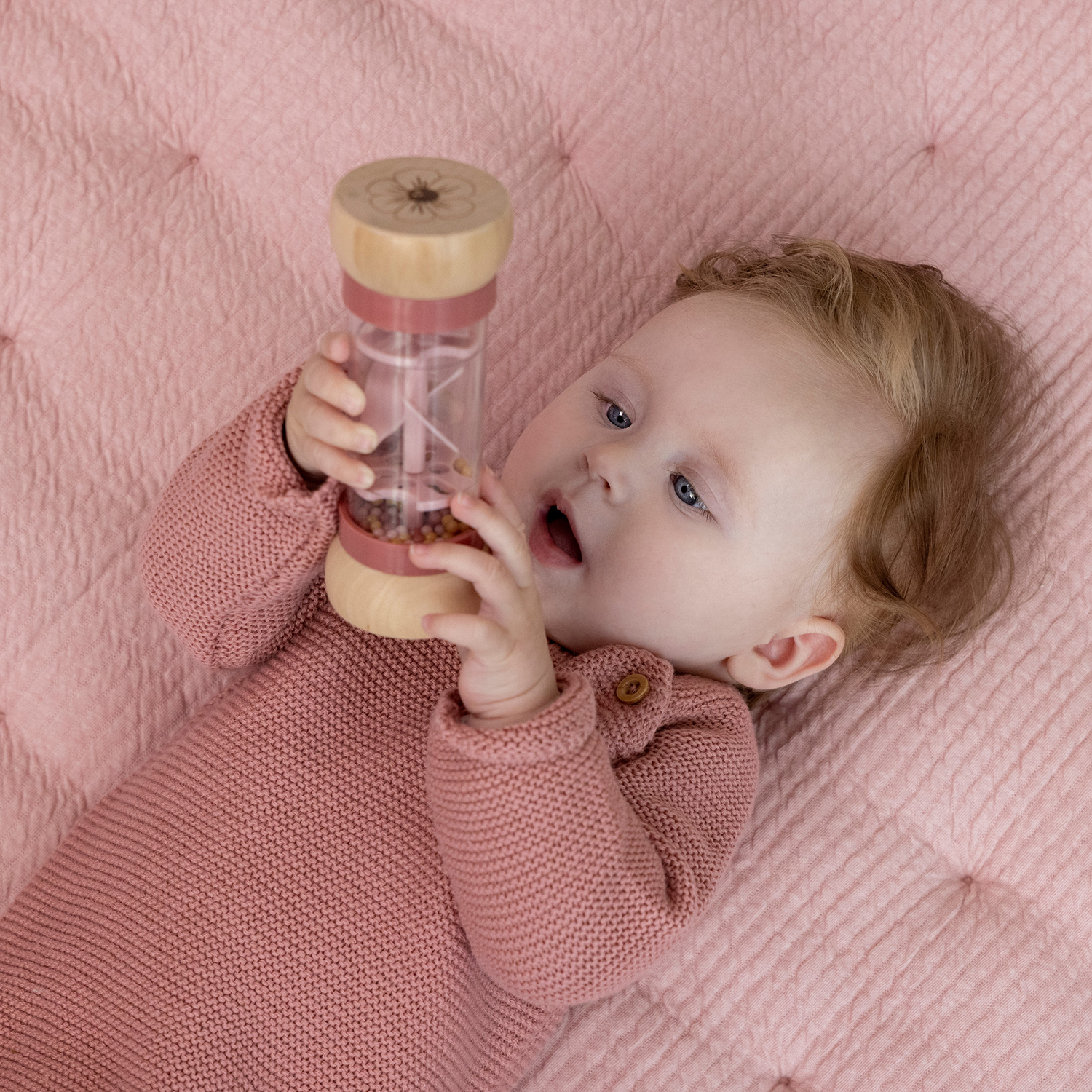 Die Regenrassel ist für kleine Kinderhände konzipiert und liegt angenehm in der Hand.