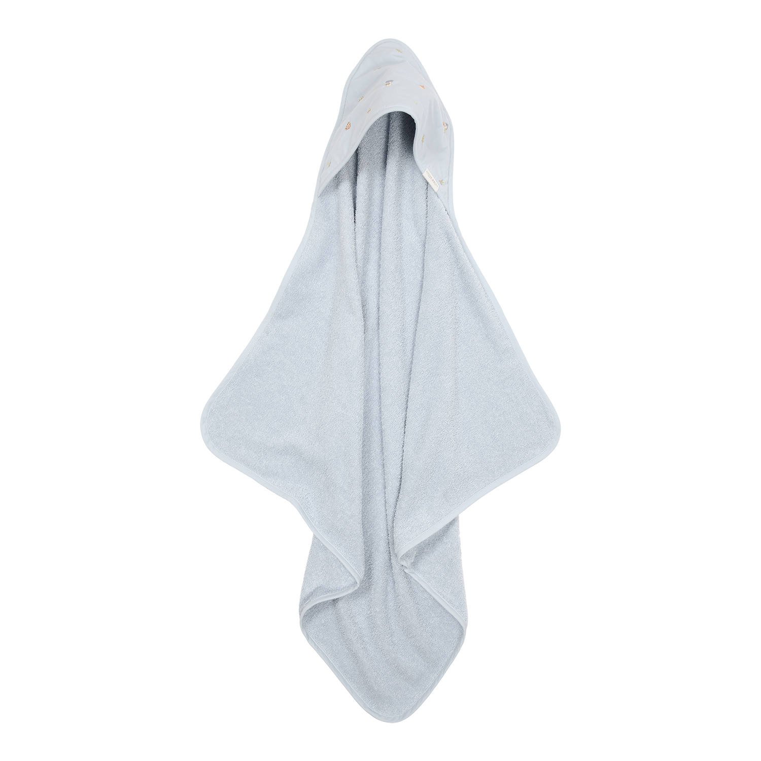 Das Handtuch hat eine wunderschöne hellblaue-Farbe und die Kapuze ist mit niedlichen gestickten Pilzen aus der Forest Friends-Kollektion verziert.