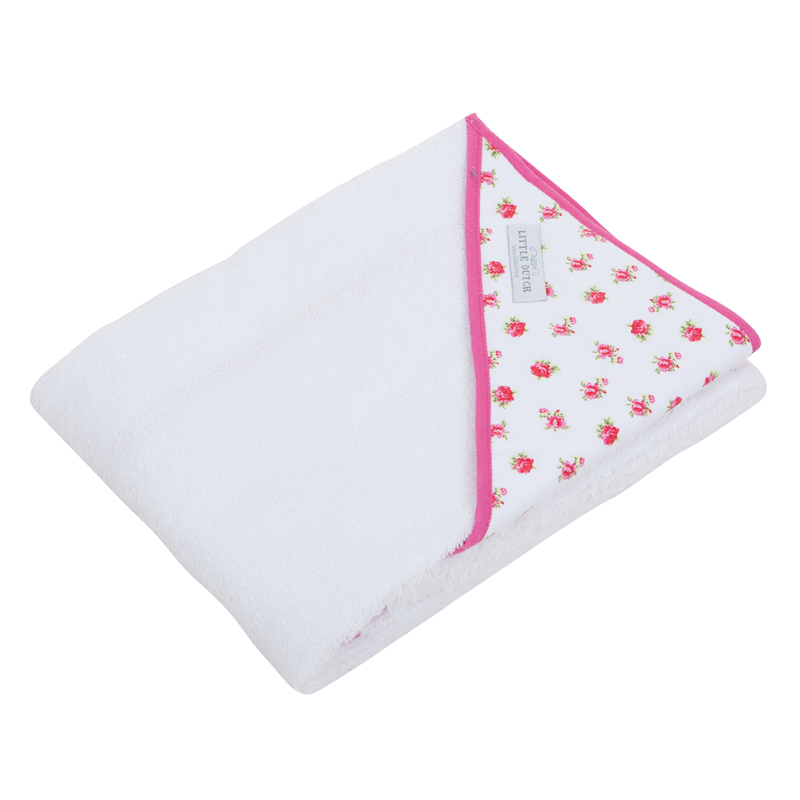 Kapuzenhandtuch Pink Roses weiß (75x75 cm)