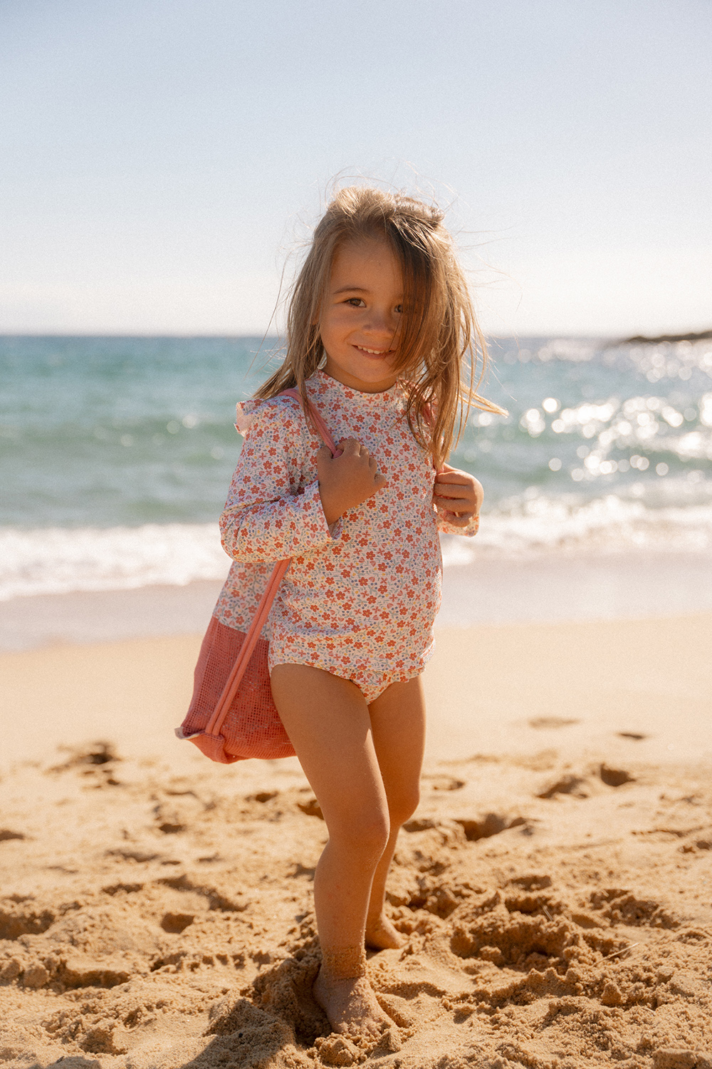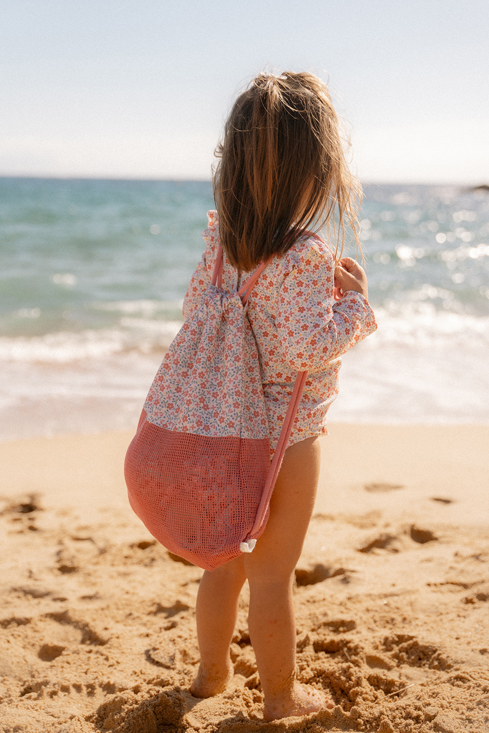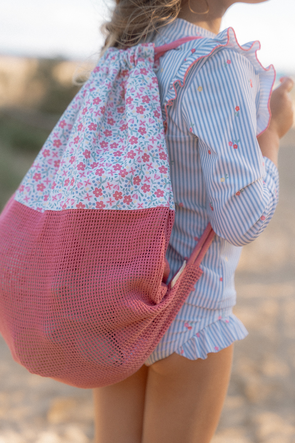 Der Boden der Tasche ist aus Mesh-Stoff, so dass die nasse Badebekleidung schnell trocknet und Mama keinen Sand im Auto hat.