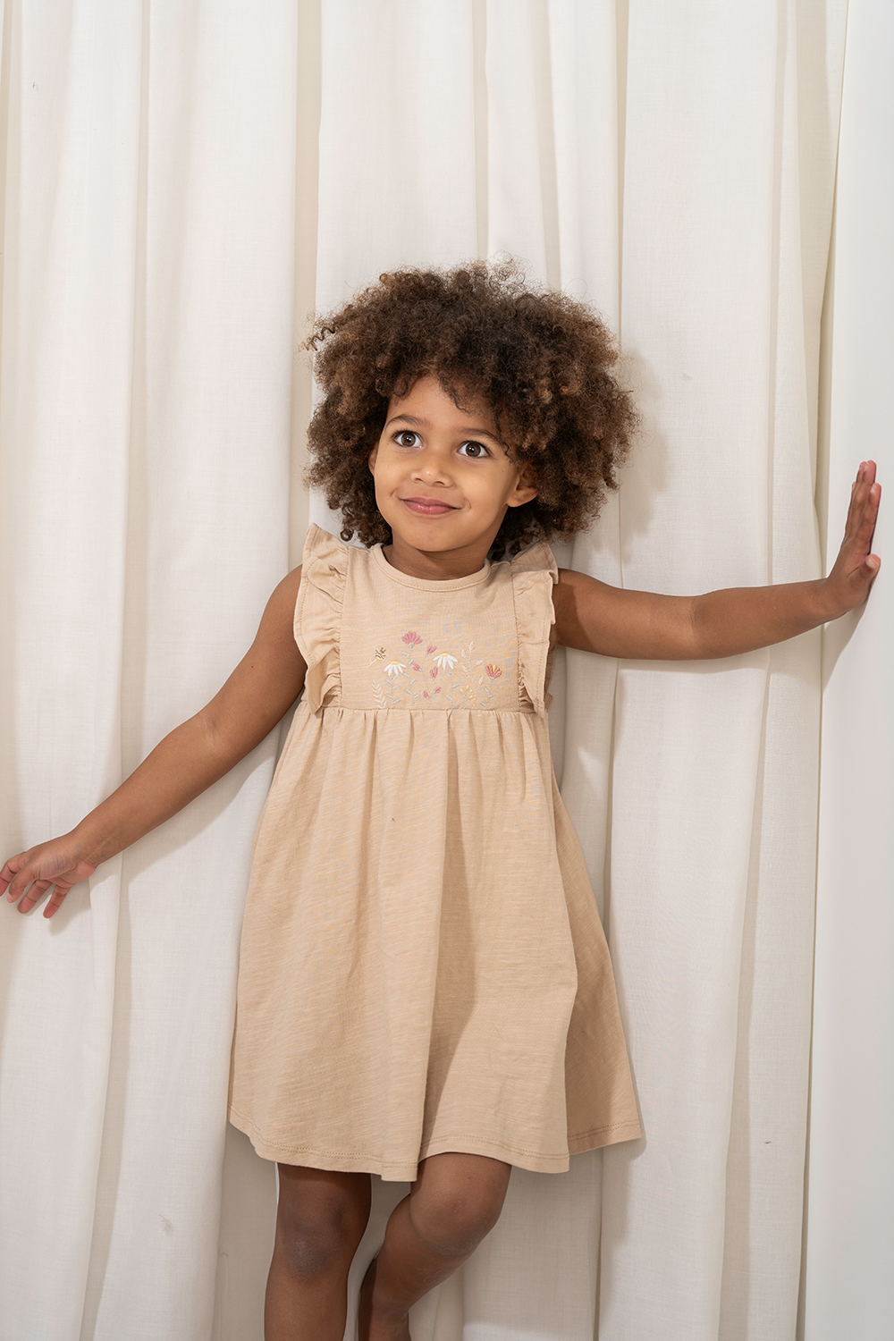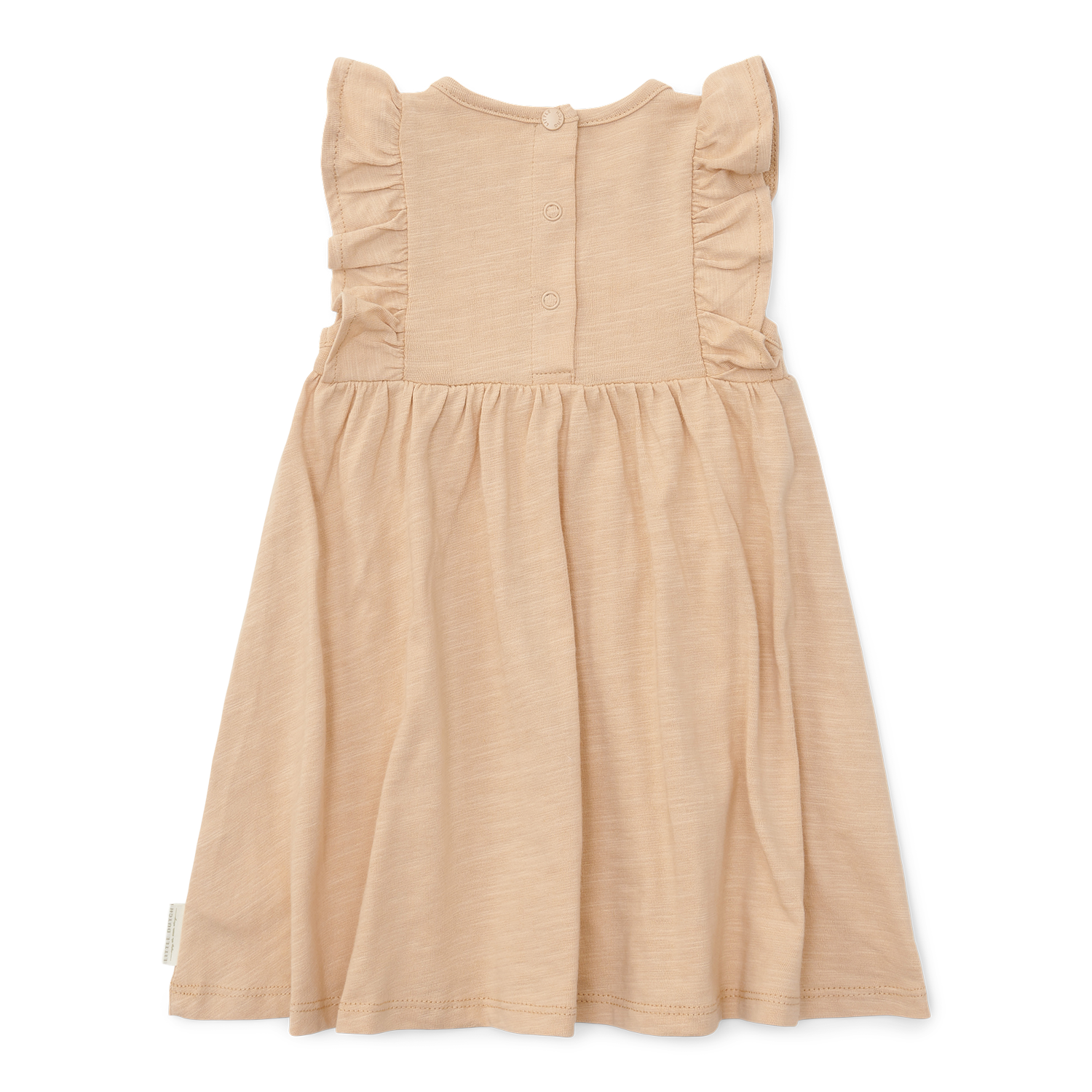 Ist das nicht ein Bild! Dieses beigefarbene Jersey-Kleid mit Slub-Struktur ist aus weicher Bio-Baumwolle gefertigt und eignet sich hervorragend für warme Tage.
