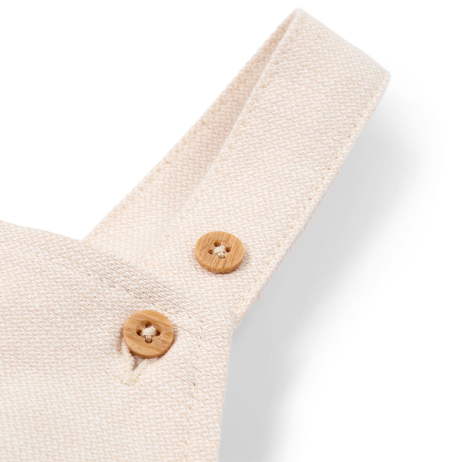 Diese kurze Latzhose in meliertem Sand besteht aus einem gewebten Stoff in Leinenoptik – leicht, luftig und ideal für sommerliche Abenteuer.