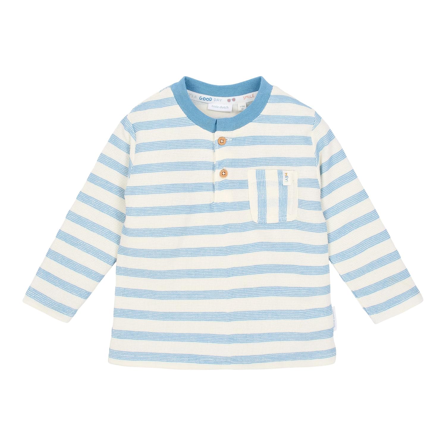 Dieses Langarmshirt in Steel Blue Stripe besteht aus einem Stoff mit feiner Waffelstruktur und breiten Streifen.