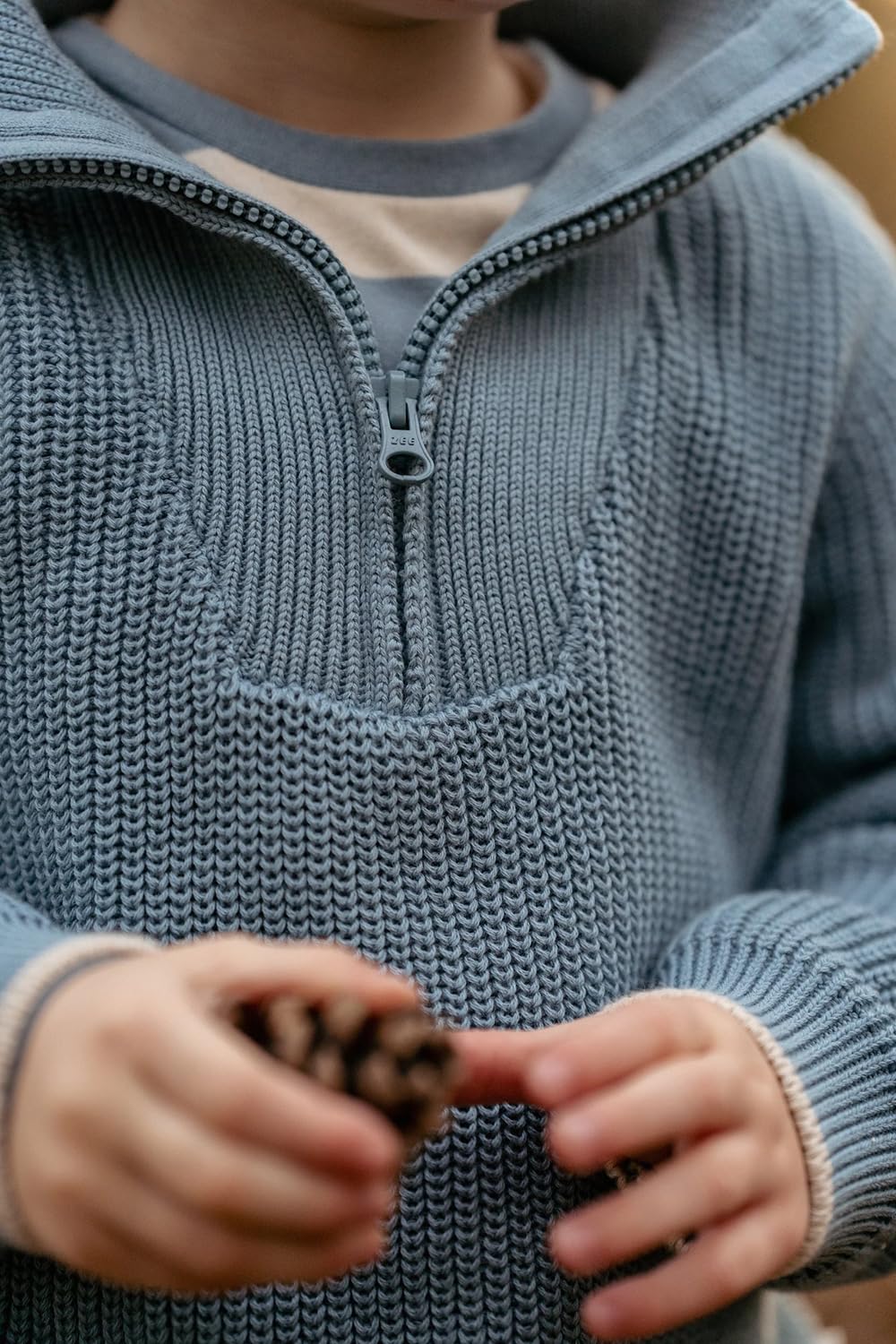 Mit diesem schönen, warmen Strickpulli in der Farbe Stone Blue ist Ihr Kleiner bereit für Abenteuer.