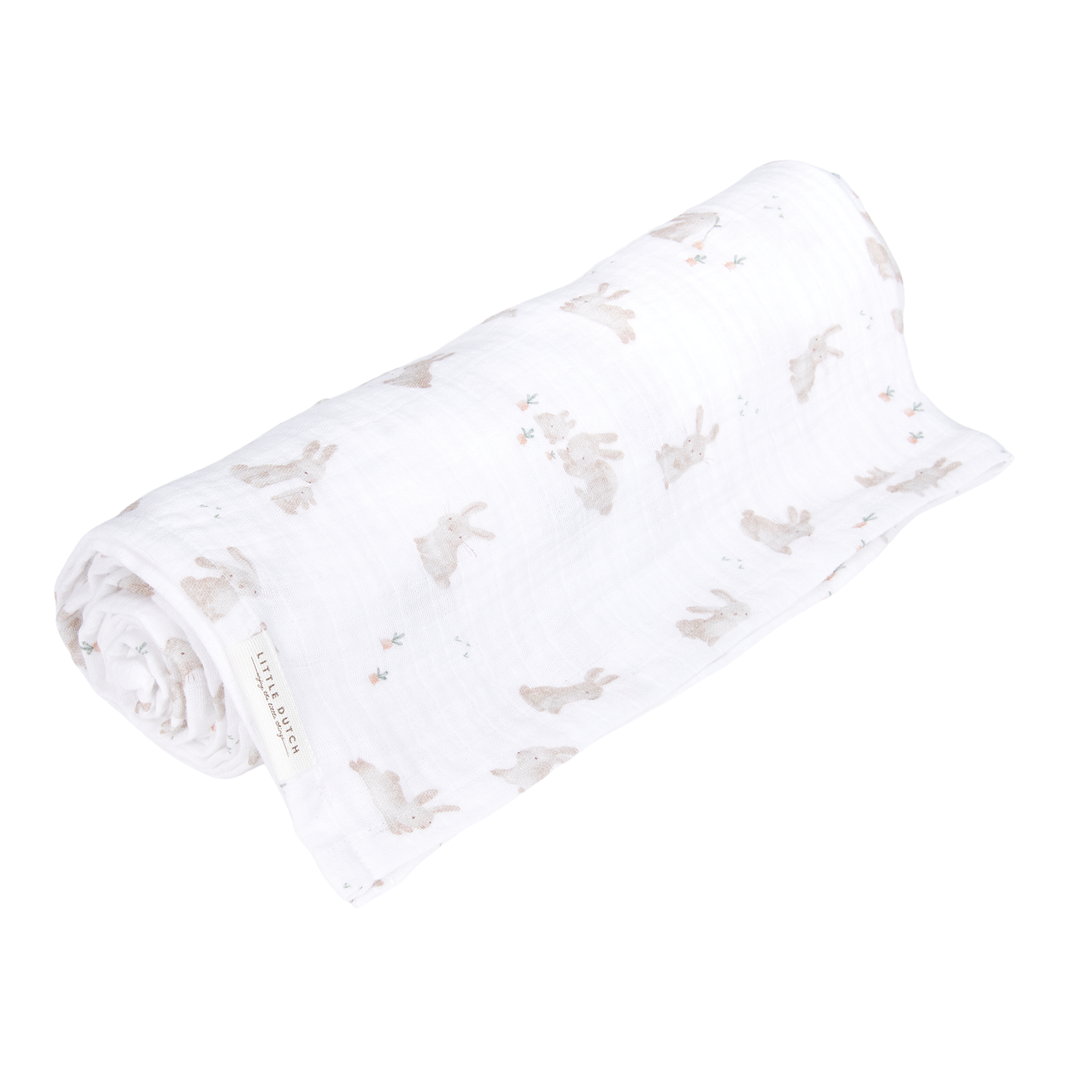 Musselin Swaddle Tuch / Pucktuch Baby Bunny - Newborn Naturals weiß / beige (120x120 cm)