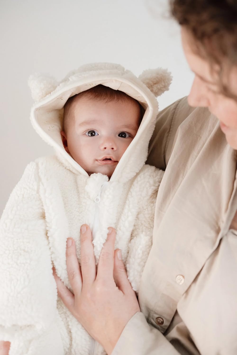 Er ist aus weichem und warmem Teddy-Stoff gefertigt, der Ihr Kleines wunderbar kuschelig einhüllt.