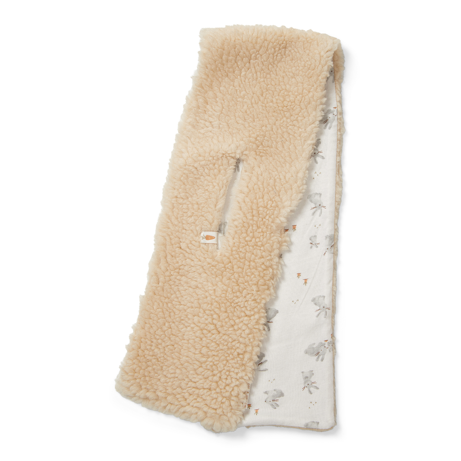 Der Schal ist mit weicher Bio-Baumwolle gefüttert und mit einem Bunny-Muster bedruckt, das dem Design einen verspielten Touch verleiht.