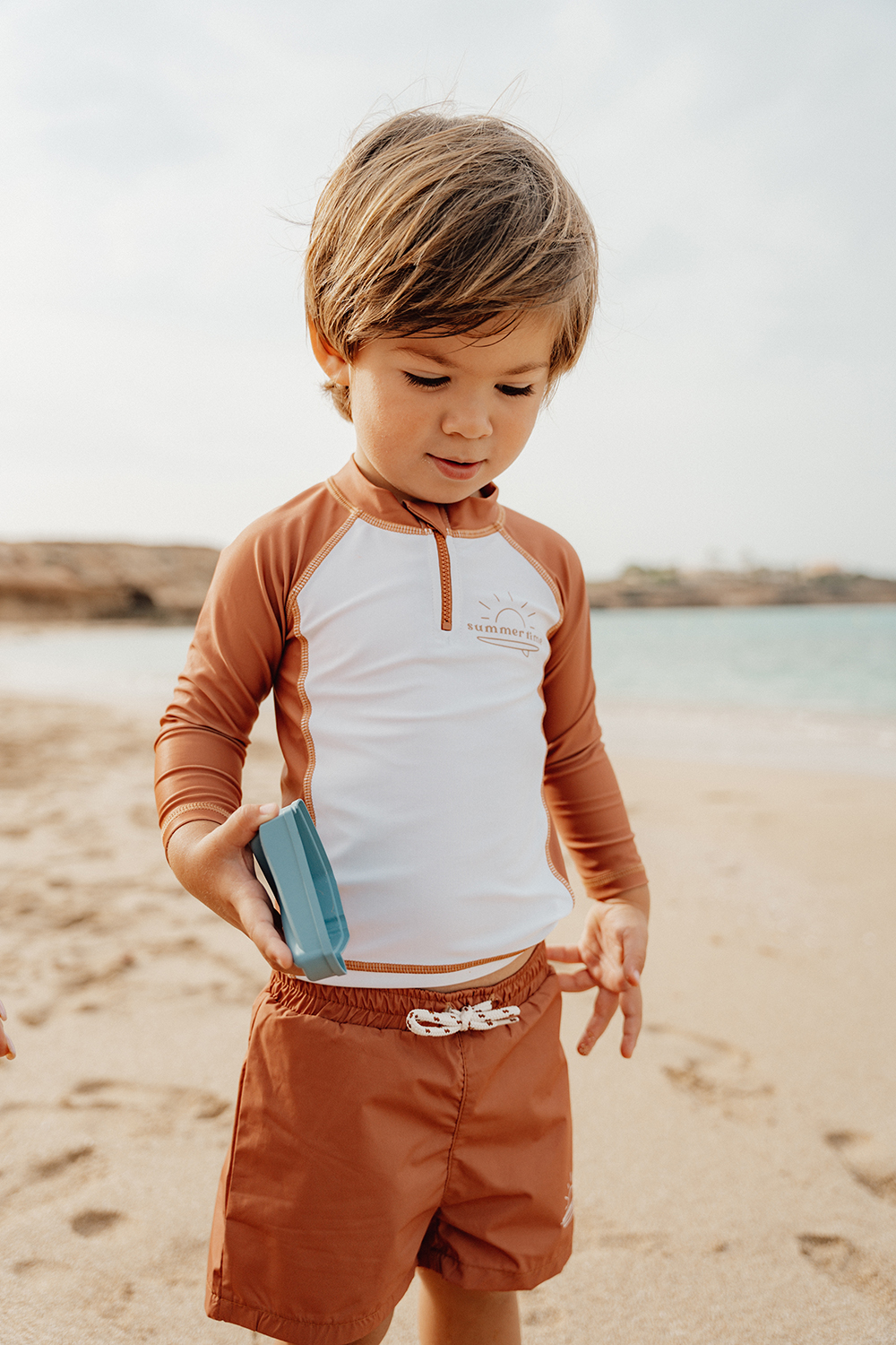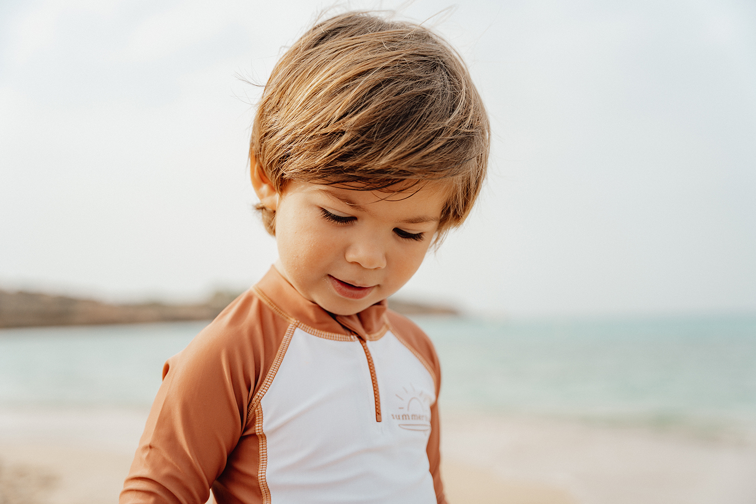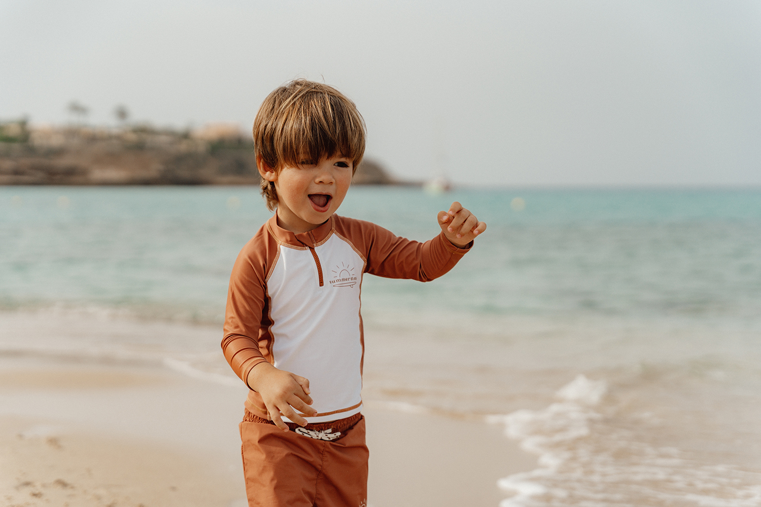Die Sonne scheint, also lasst uns gehen! Schnapp dir dein langärmeliges Schwimmshirt und dein Lieblingsstrandspielzeug für einen Tag voller Wasserspaß.