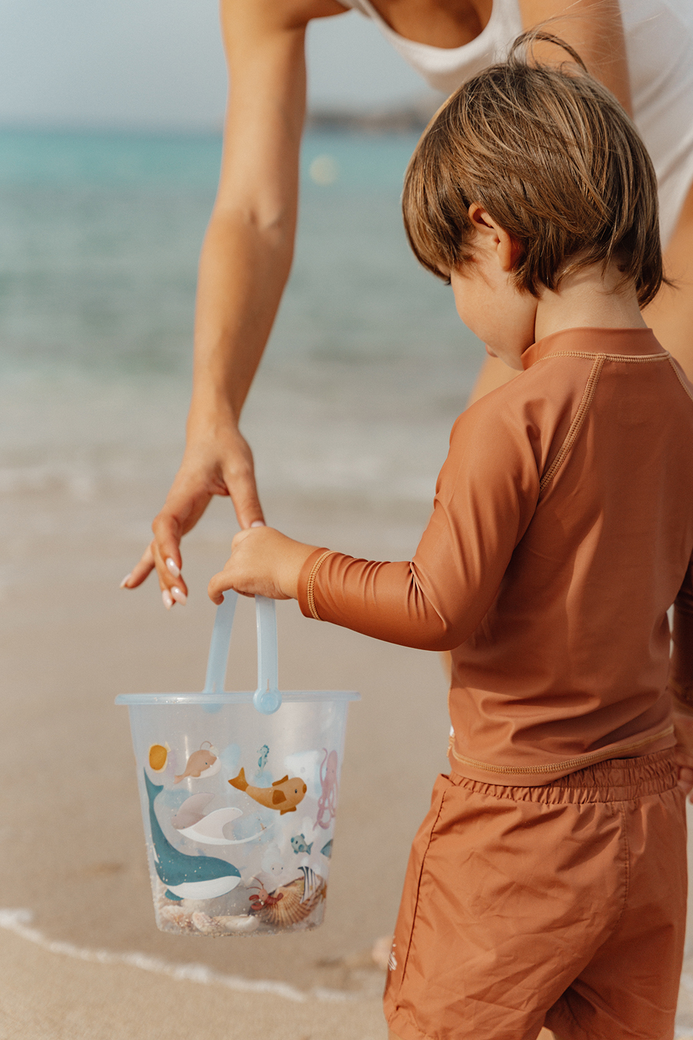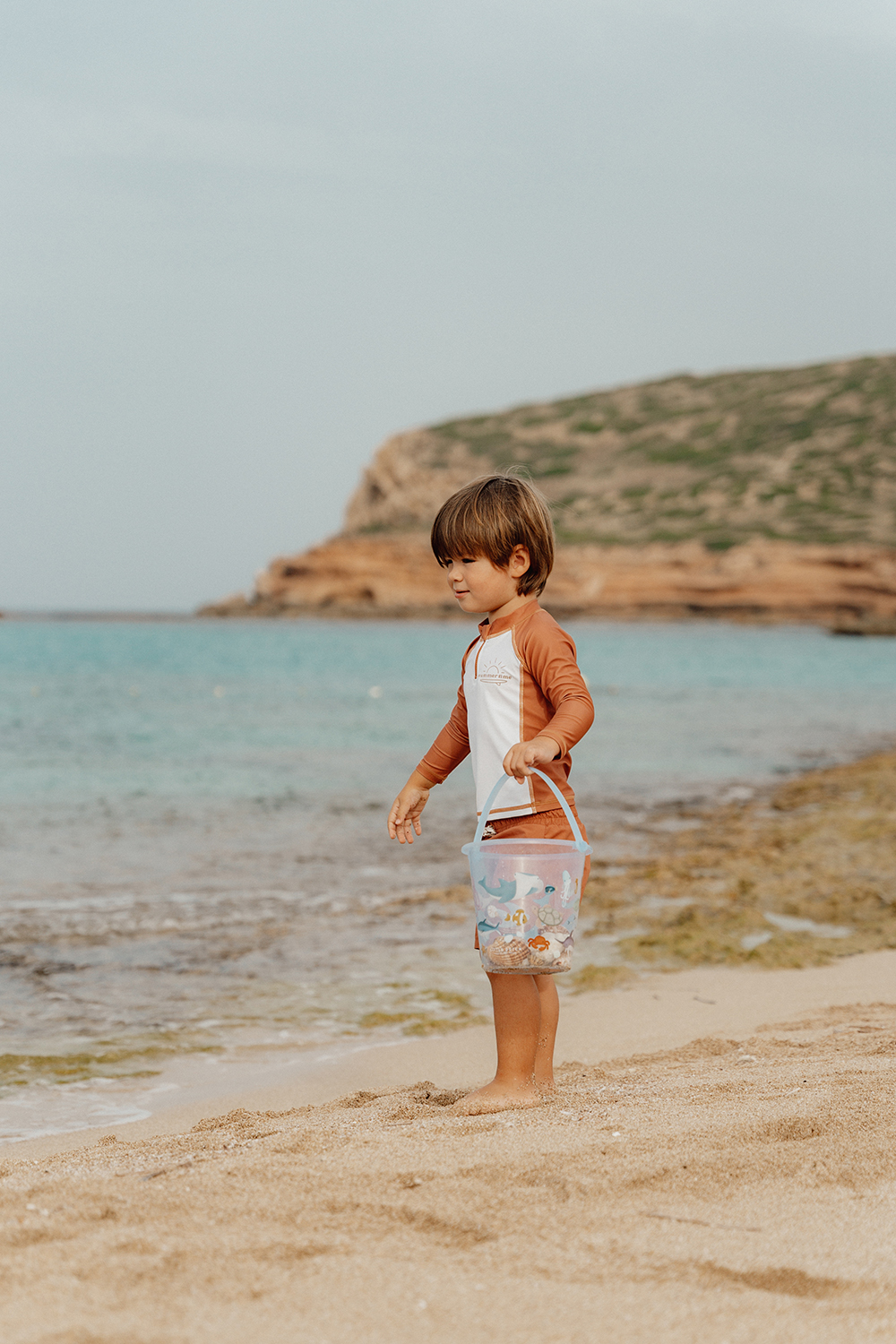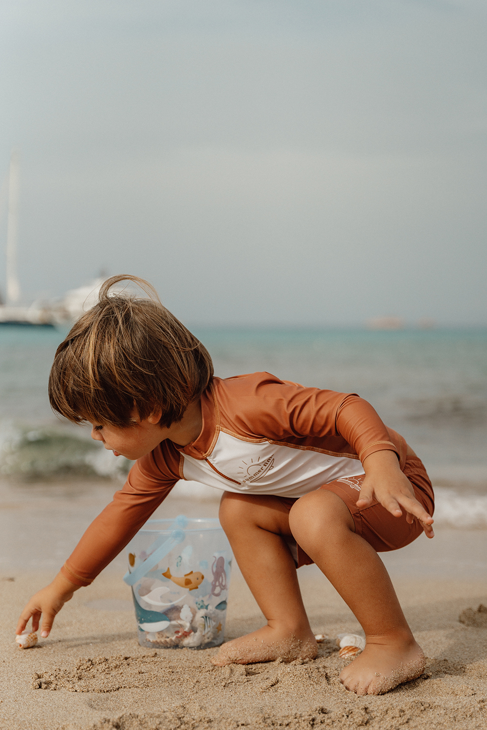 Die Sonne scheint, also lasst uns gehen! Schnapp dir dein langärmeliges Schwimmshirt und dein Lieblingsstrandspielzeug für einen Tag voller Wasserspaß.