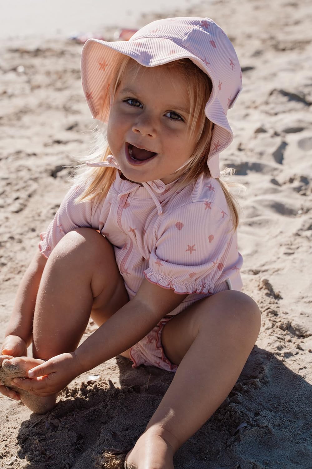 Mit dem rosa Schwimmshirt Dreamy Seashells wird jeder Tag zu einem neuen Strandabenteuer.