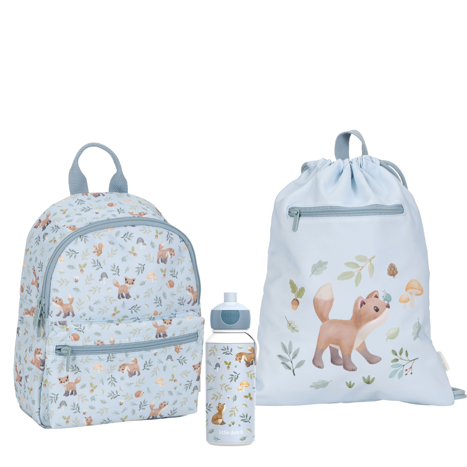 Dieses schöne Forest Friends Set aus Rucksack, Turnbeutel und Trinkflasche ist ideal für Ausflüge jeglicher Art, Schul- oder Familienbesuche.