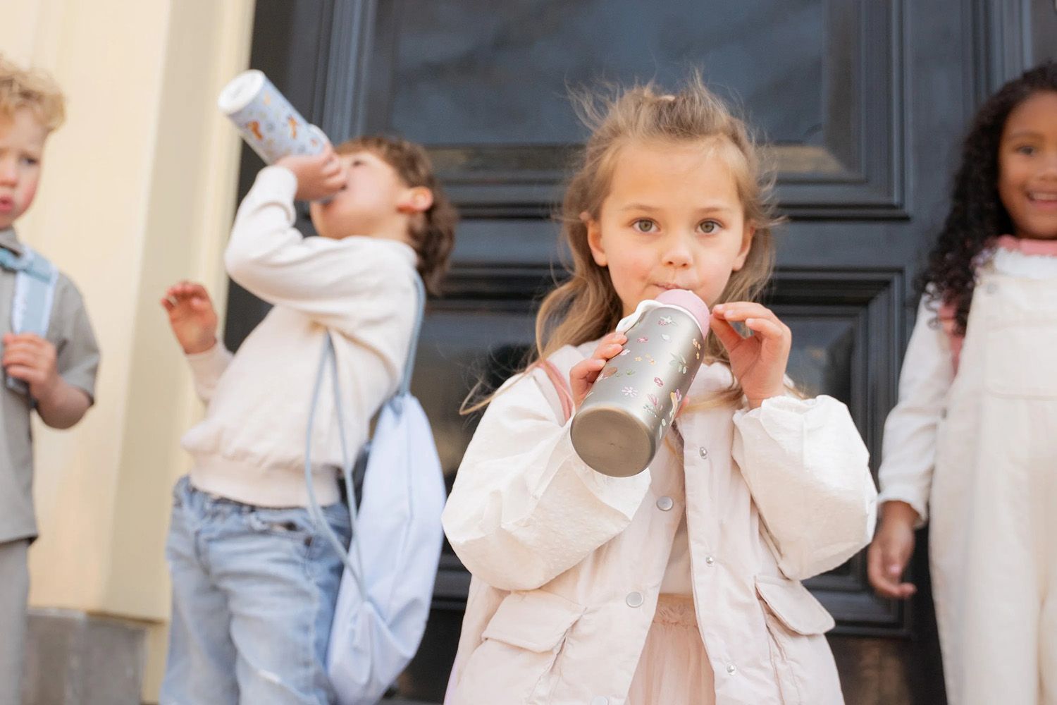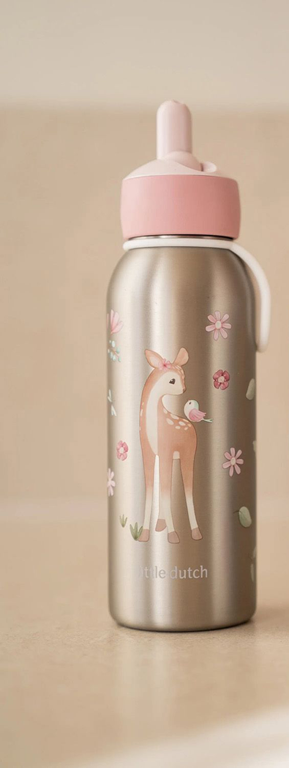 Die Flip-up-Thermotrinkflasche passt perfekt zu den beiden Taschen und sorgt dafür, dass das Getränk schön kühl bleibt.