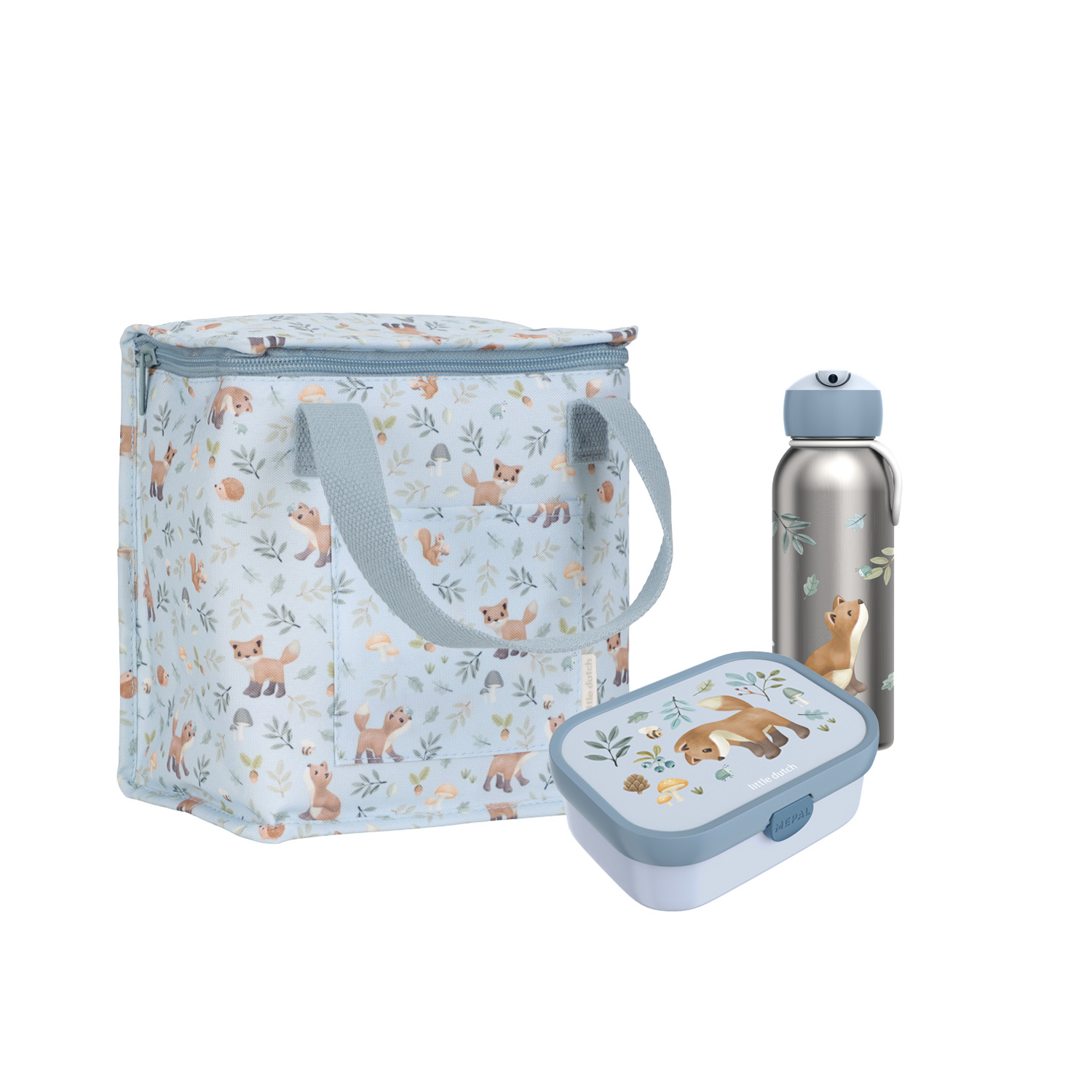 Dieses praktische Forest Friends Set aus Kühltasche, Brotdose und Thermoflasche ist ideal für Ausflüge jeglicher Art oder Familienbesuche.