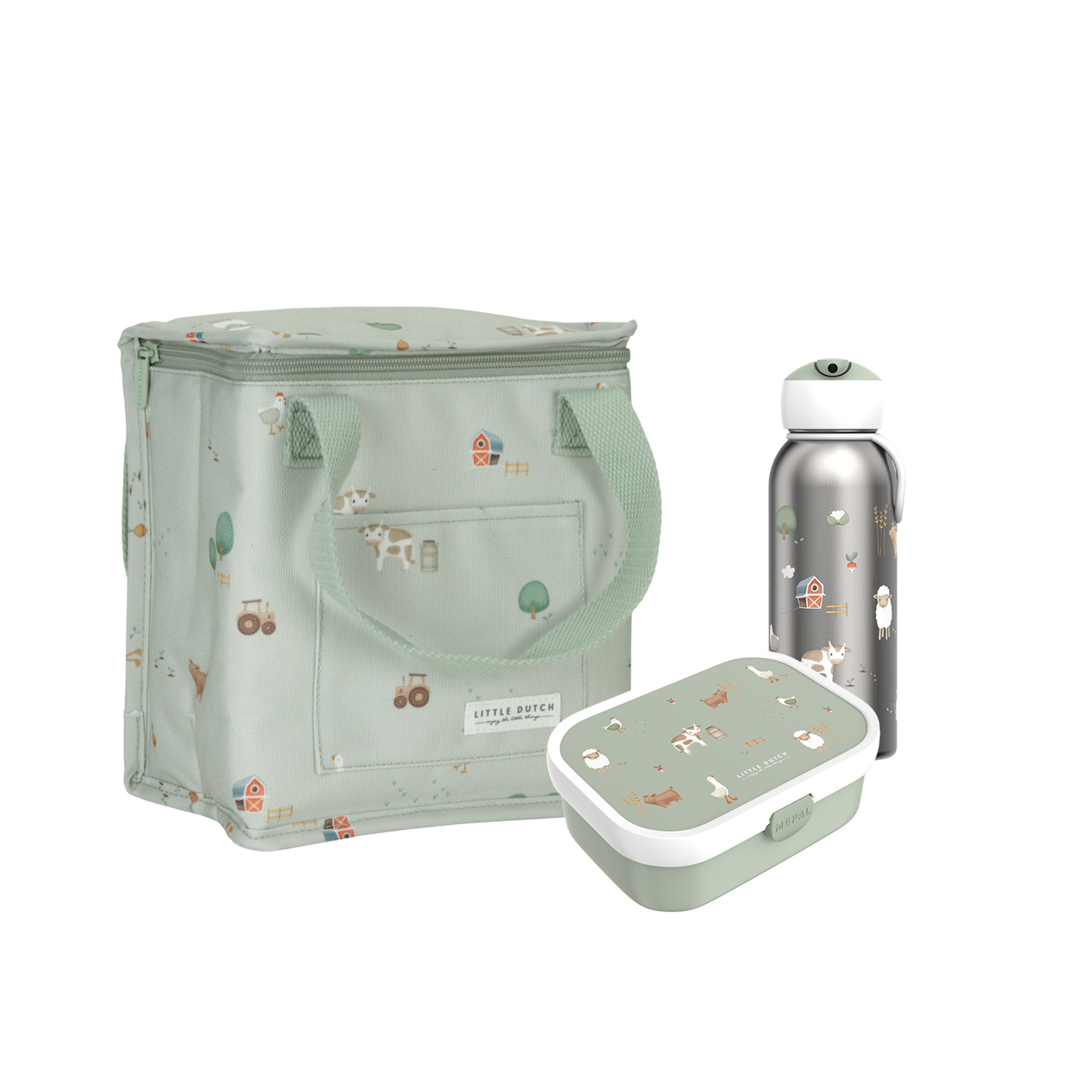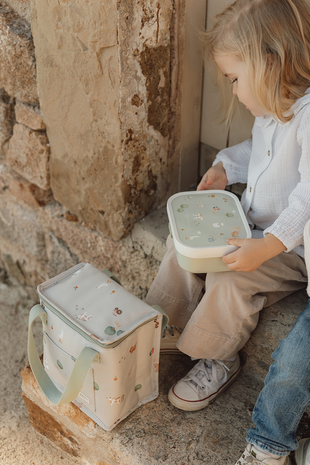 Dieses praktische Little Farm Set aus Kühltasche, Brotdose und Thermoflasche ist ideal für Ausflüge jeglicher Art oder Familienbesuche.