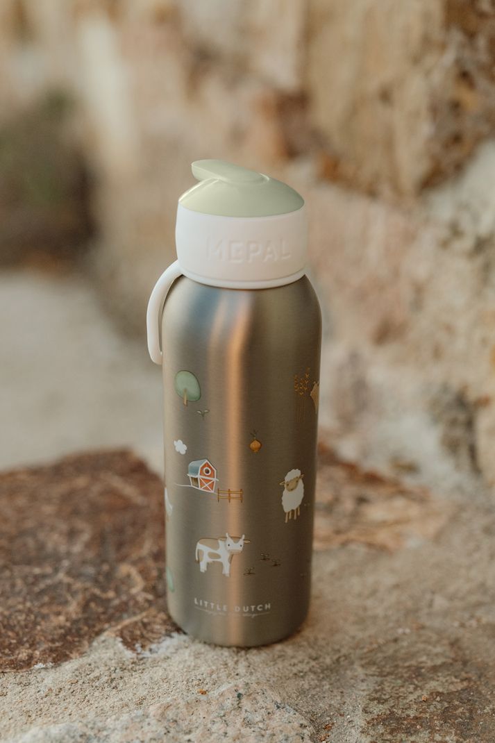Die Flip-up-Thermotrinkflasche passt perfekt zu den beiden Taschen und sorgt dafür, dass das Getränk schön kühl bleibt.