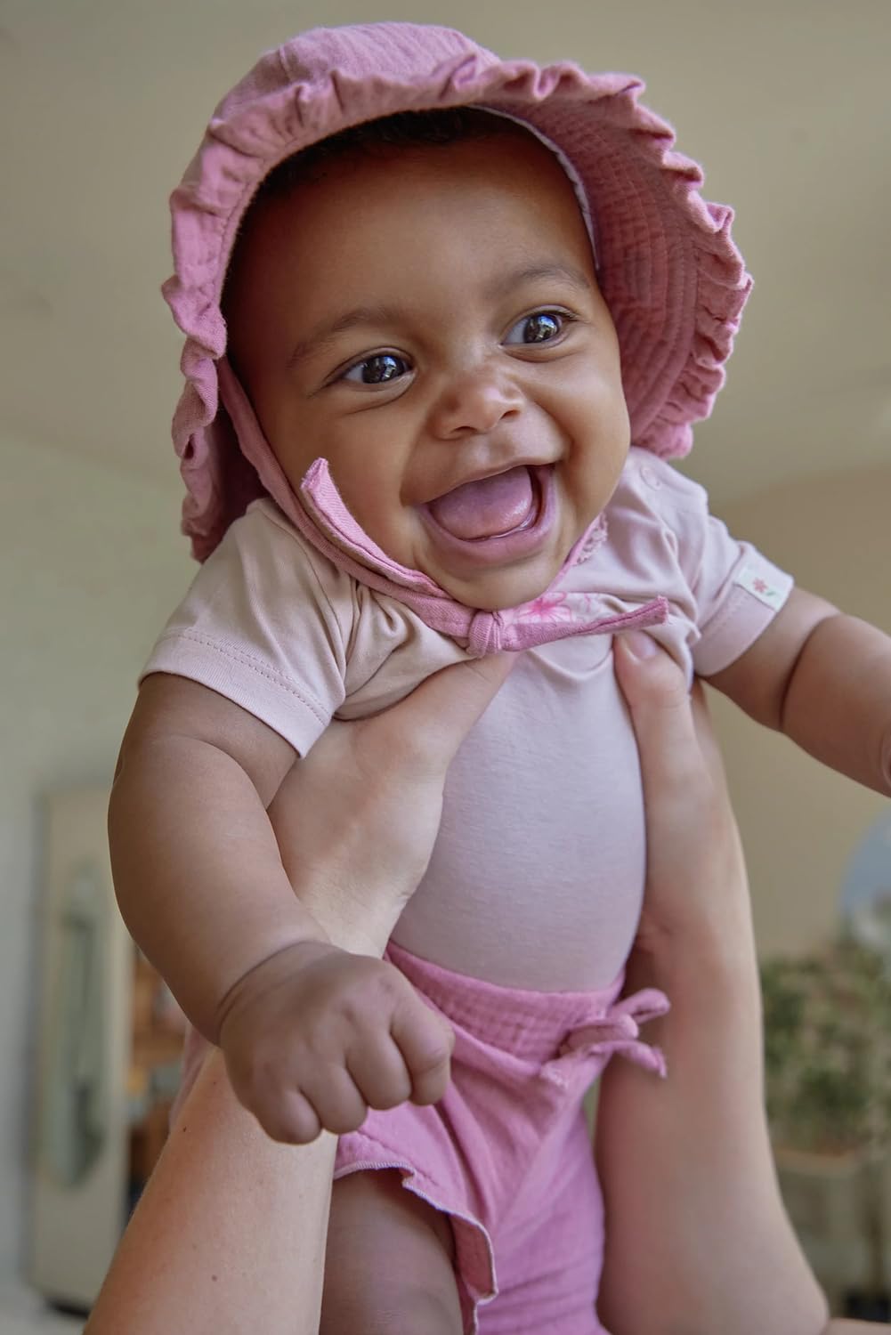 Sonnenhut Musselin mit Rüsche Pink Blush - Fairy Garden rosa (Gr. 3-6 Monate)