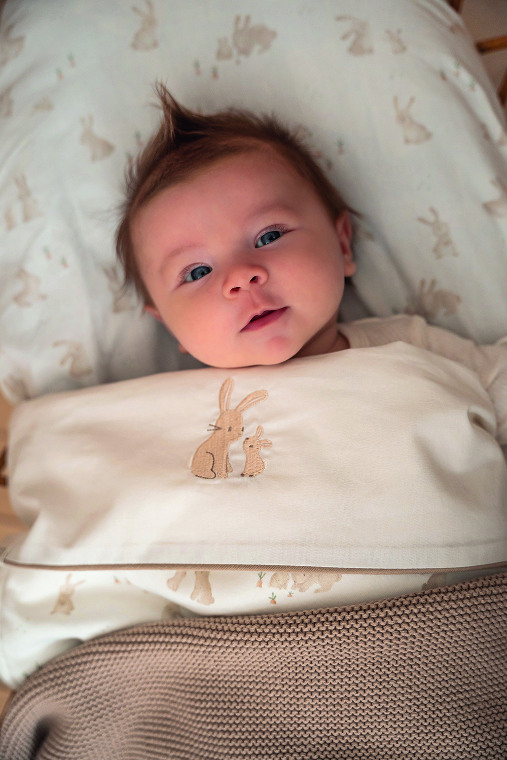Dieses Exemplar aus der Baby Bunny-Kollektion ist mit einem schönen Hasenaufdruck versehen. Ein echter Blickfang!