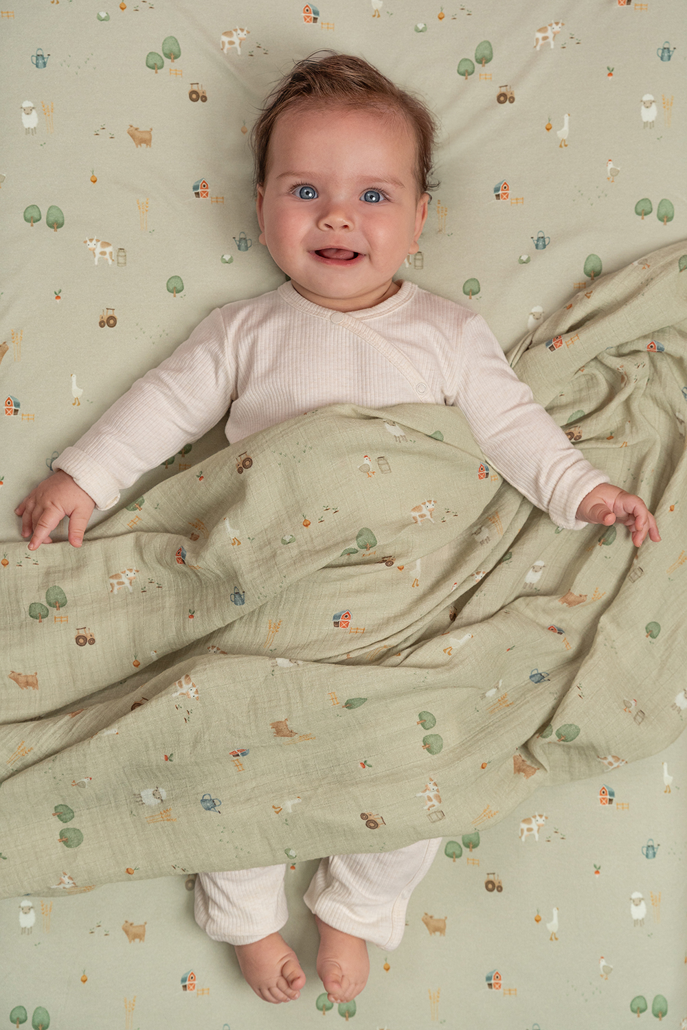 Spannbetttuch für Kinderbett - Little Farm grün (70x140 cm)