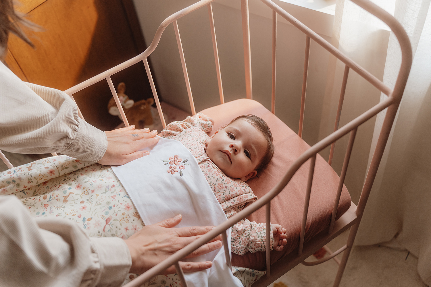 Decken Sie die Matratze Ihres Kindes mit diesem Spannbetttuch zu, damit es gut schlafen kann.
