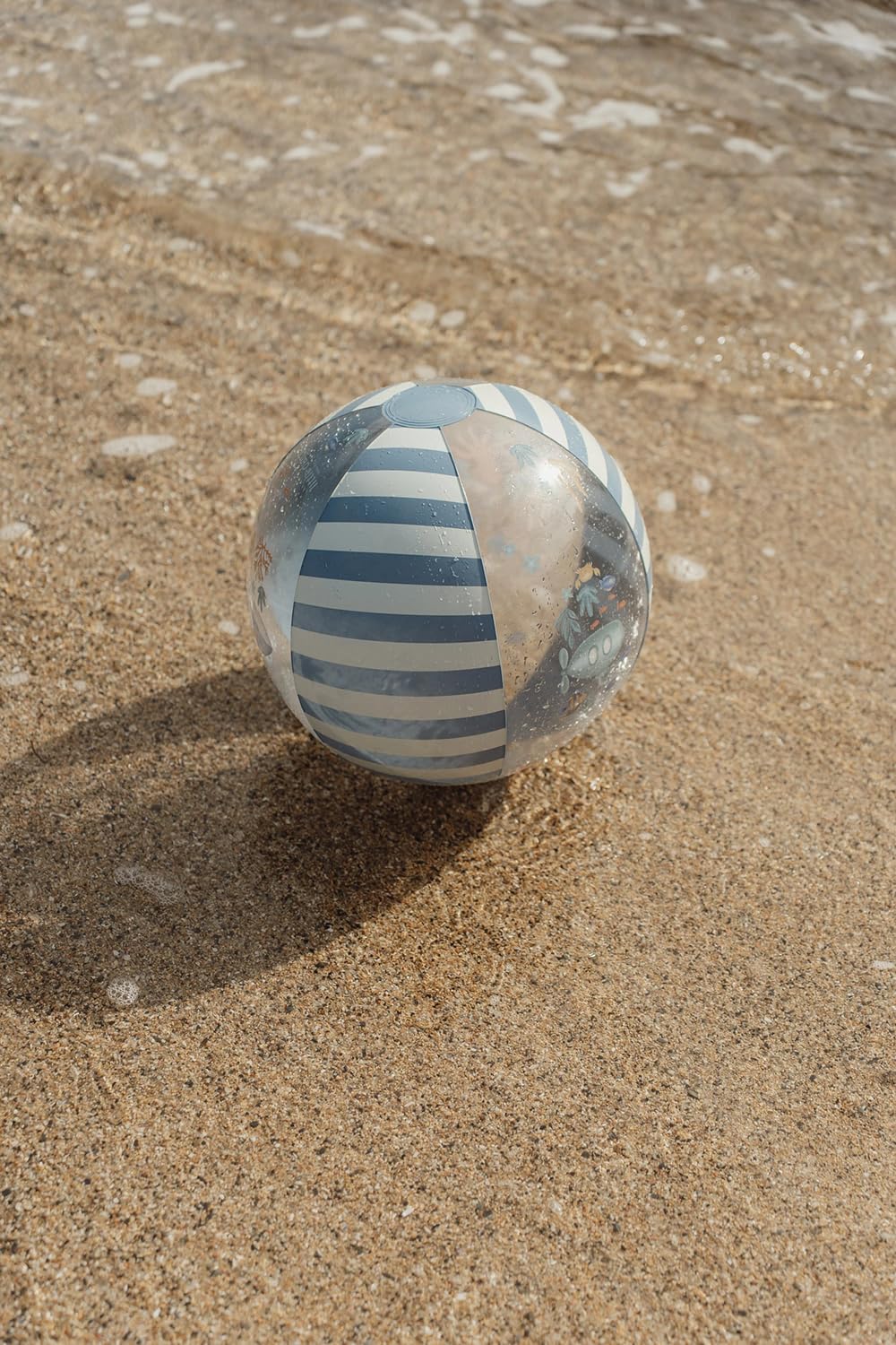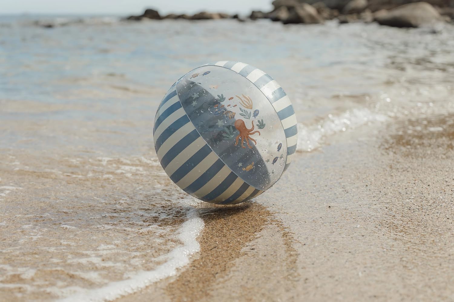 Mit dem verspielten Ozeandruck und den fröhlichen Streifen ist dieser Strandball ein echter Blickfang.