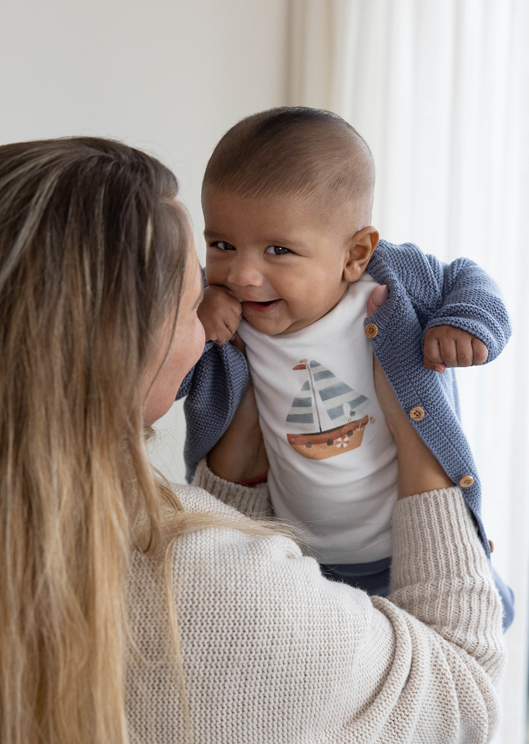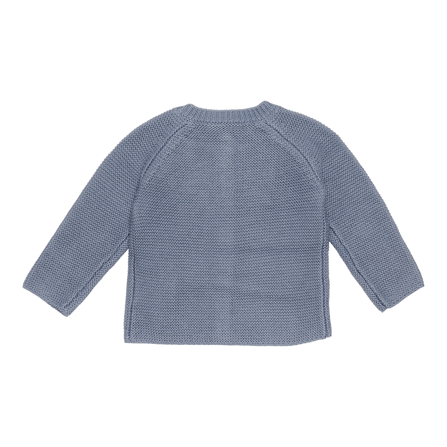 Mit dieser leicht an- und auszuziehenden Strickjacke aus einer Baumwollmischung hat es das Kind nie zu warm oder zu kalt.
