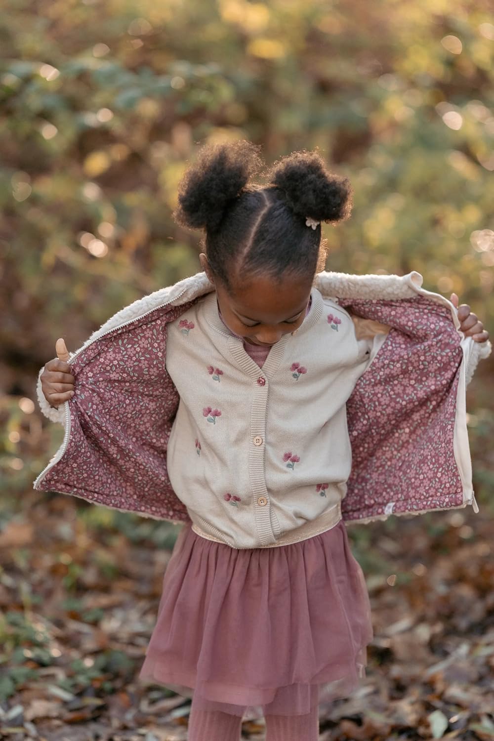 Diese süße Strickjacke von Little Dutch bringt einen Hauch von Natur in das Outfit Ihrer Kleinen.