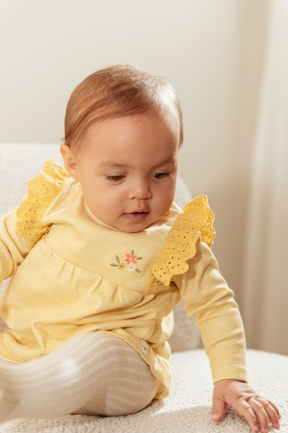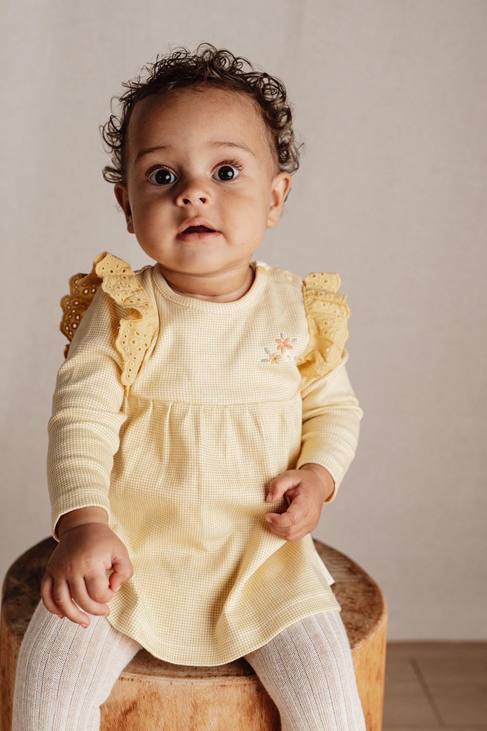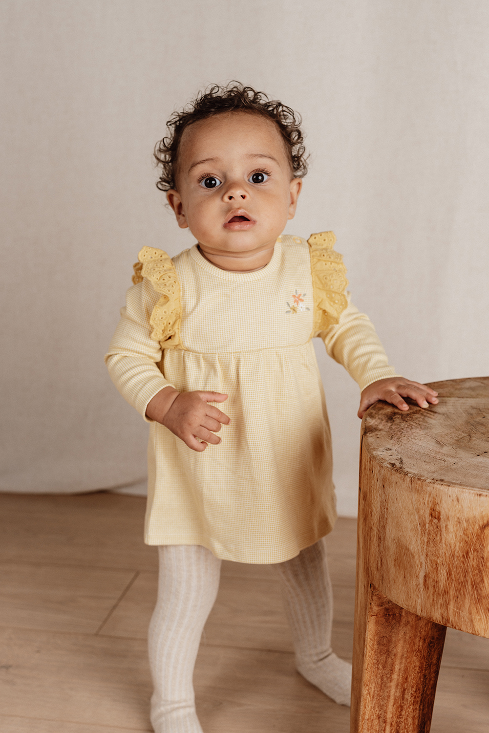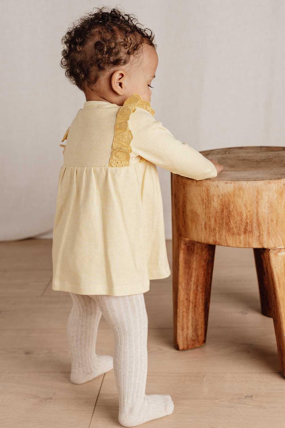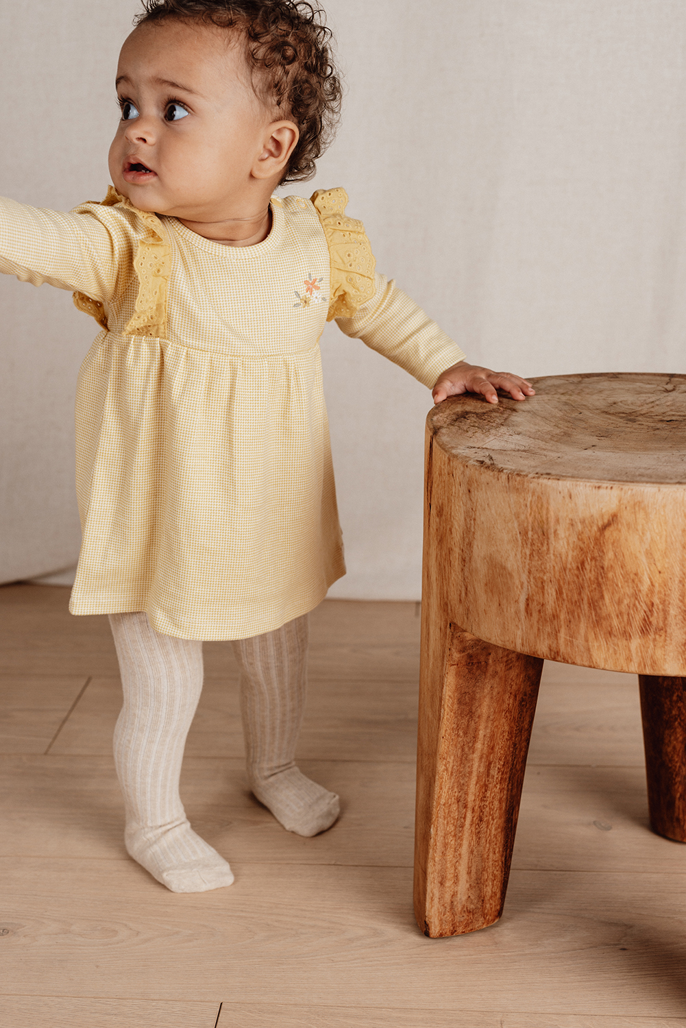 Die sandfarbene Melange passt hervorragend zu den Kleidern aus der Little Farm Kollektion.