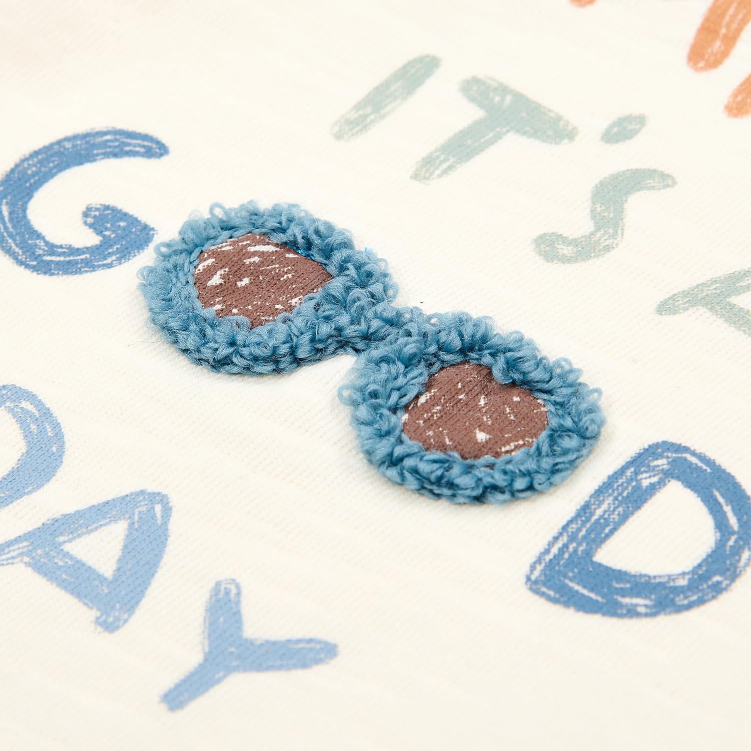 Auf der Brust sorgt ein verspieltes Artwork mit dem Text „Smile, it’s a good day“ und einer kleinen Sonnenbrille für ein sommerliches Extra.