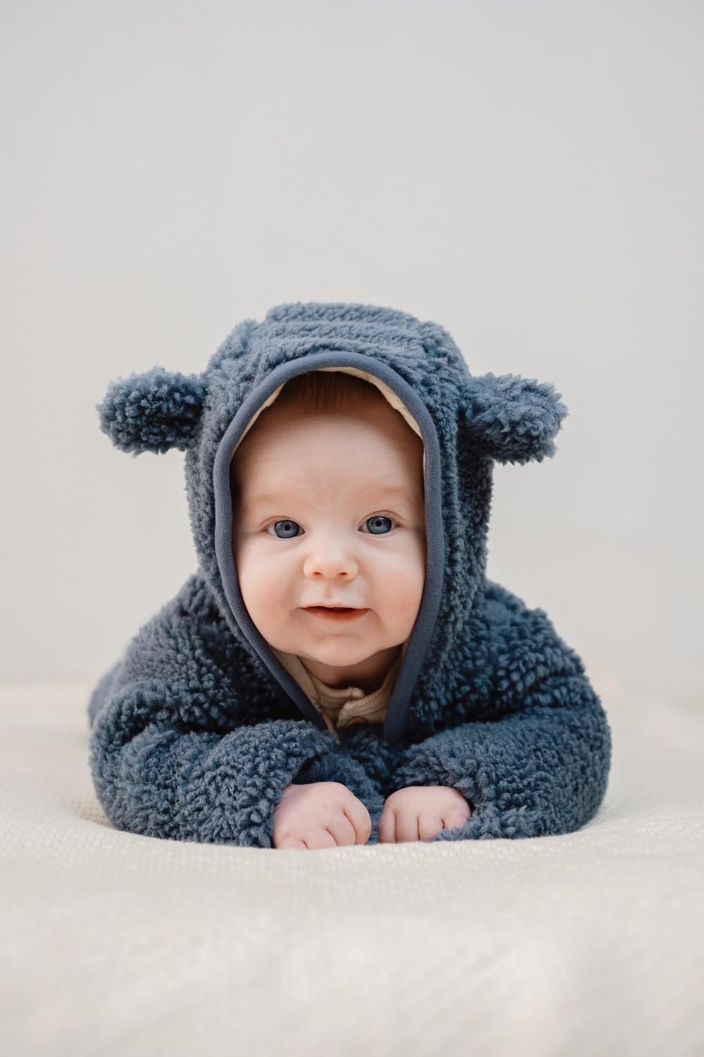 Sie ist ebenso warm wie bequem und besteht aus einem Teddy-Stoff mit süßen Ohren an der Kapuze.