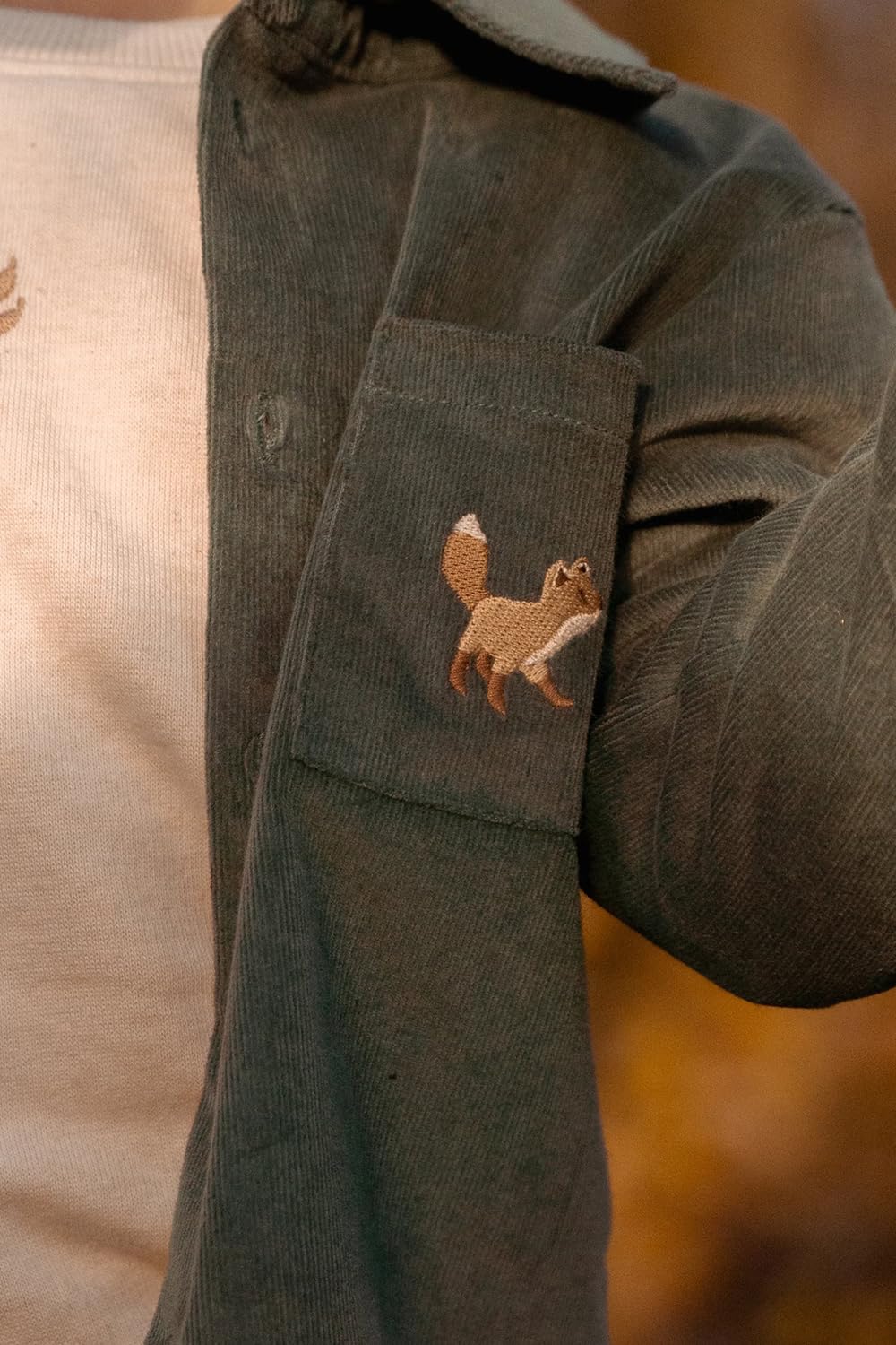 Die Knöpfe in Holzoptik verleihen dem Hemd eine coole Note, während die Brusttasche mit niedlicher „Forest Friend“-Stickerei dezent zeigt, dass es auch eine weiche Seite hat.