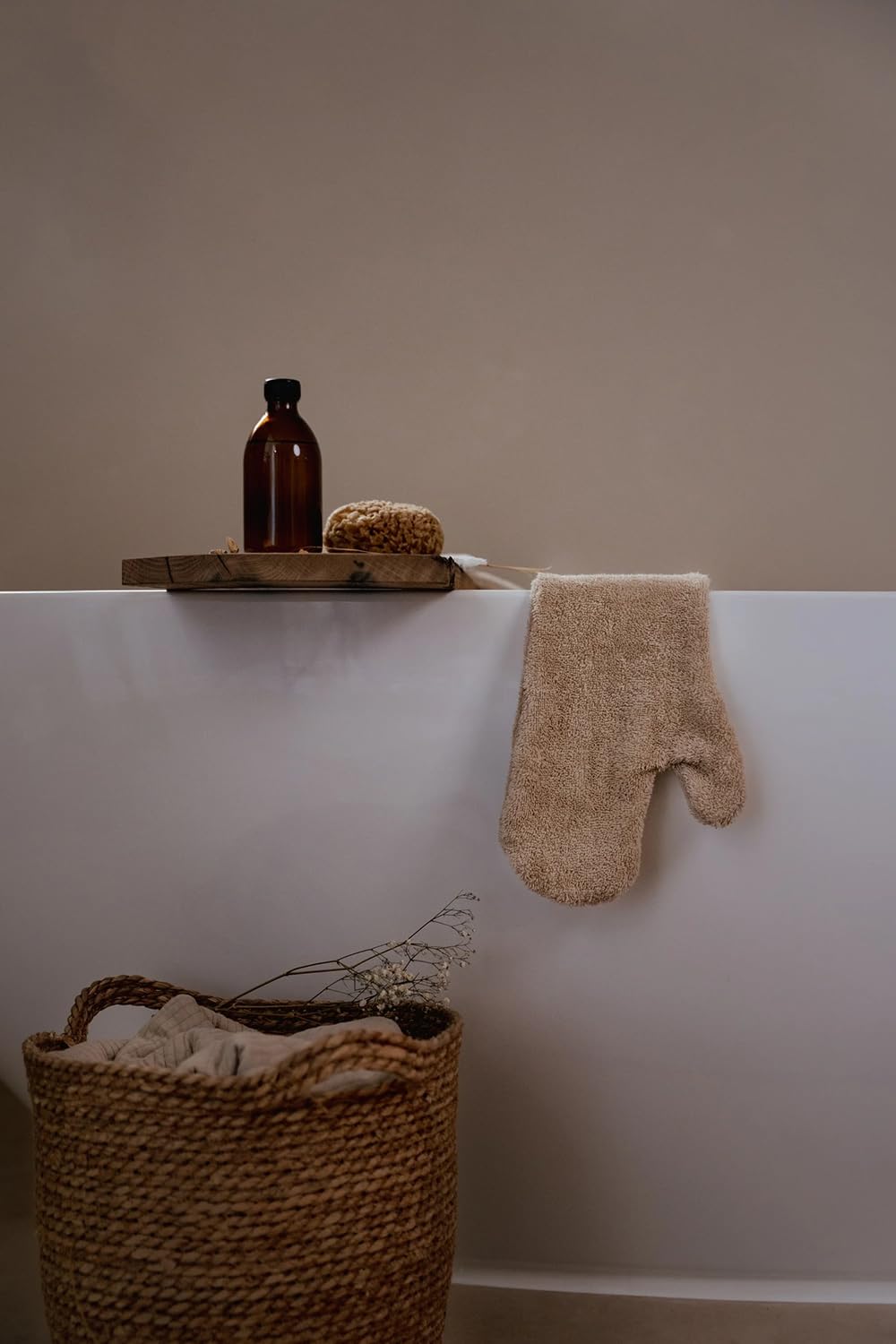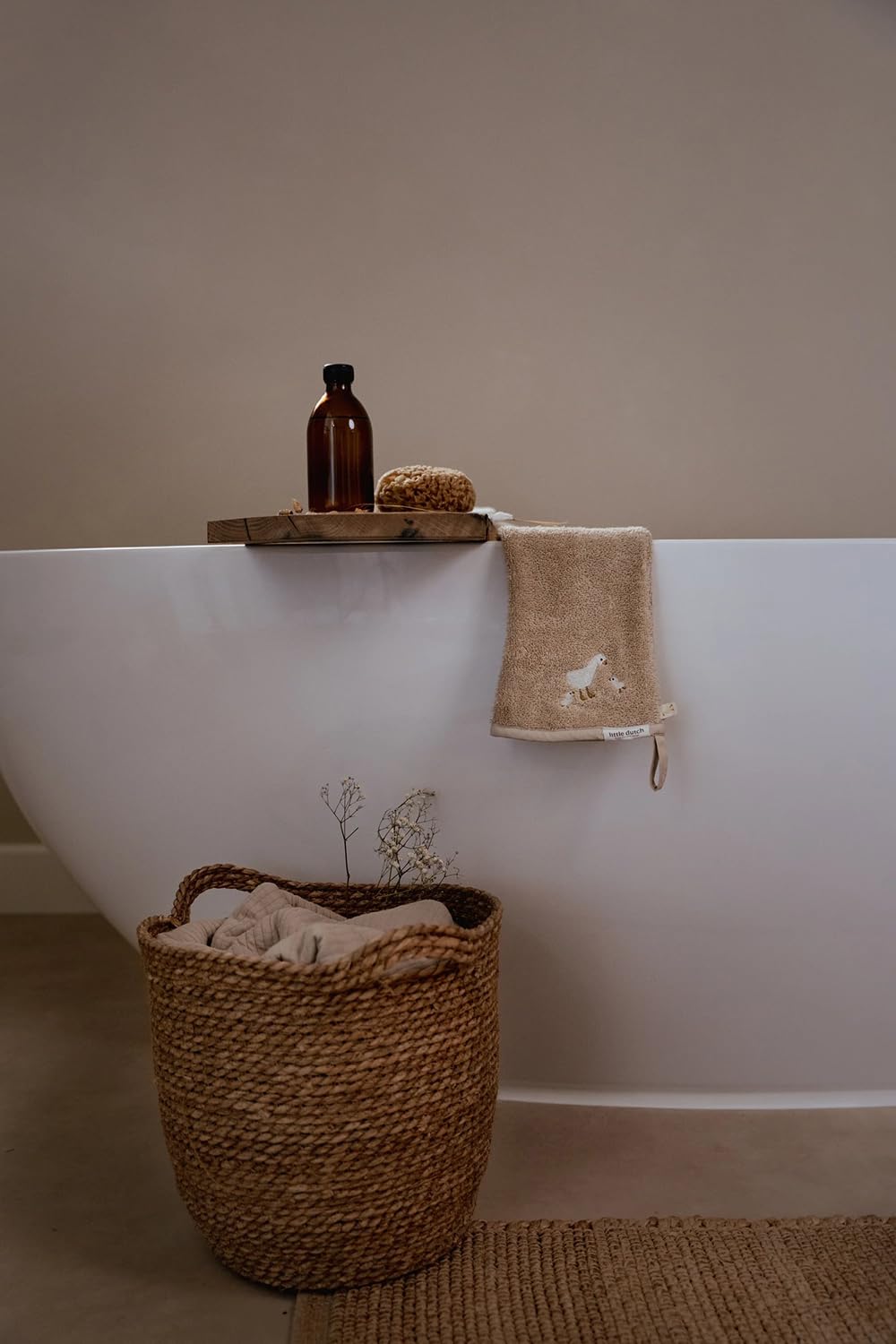 Er besteht aus 100% Baumwollfrottee (Bio), fühlt sich angenehm weich auf der Haut an und bietet zusätzlichen Halt beim Baden - keine rutschigen Seifenmomente mehr!