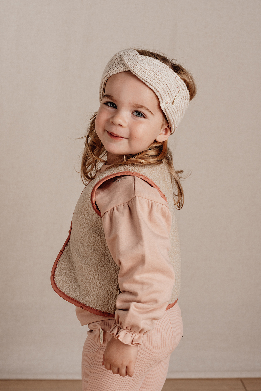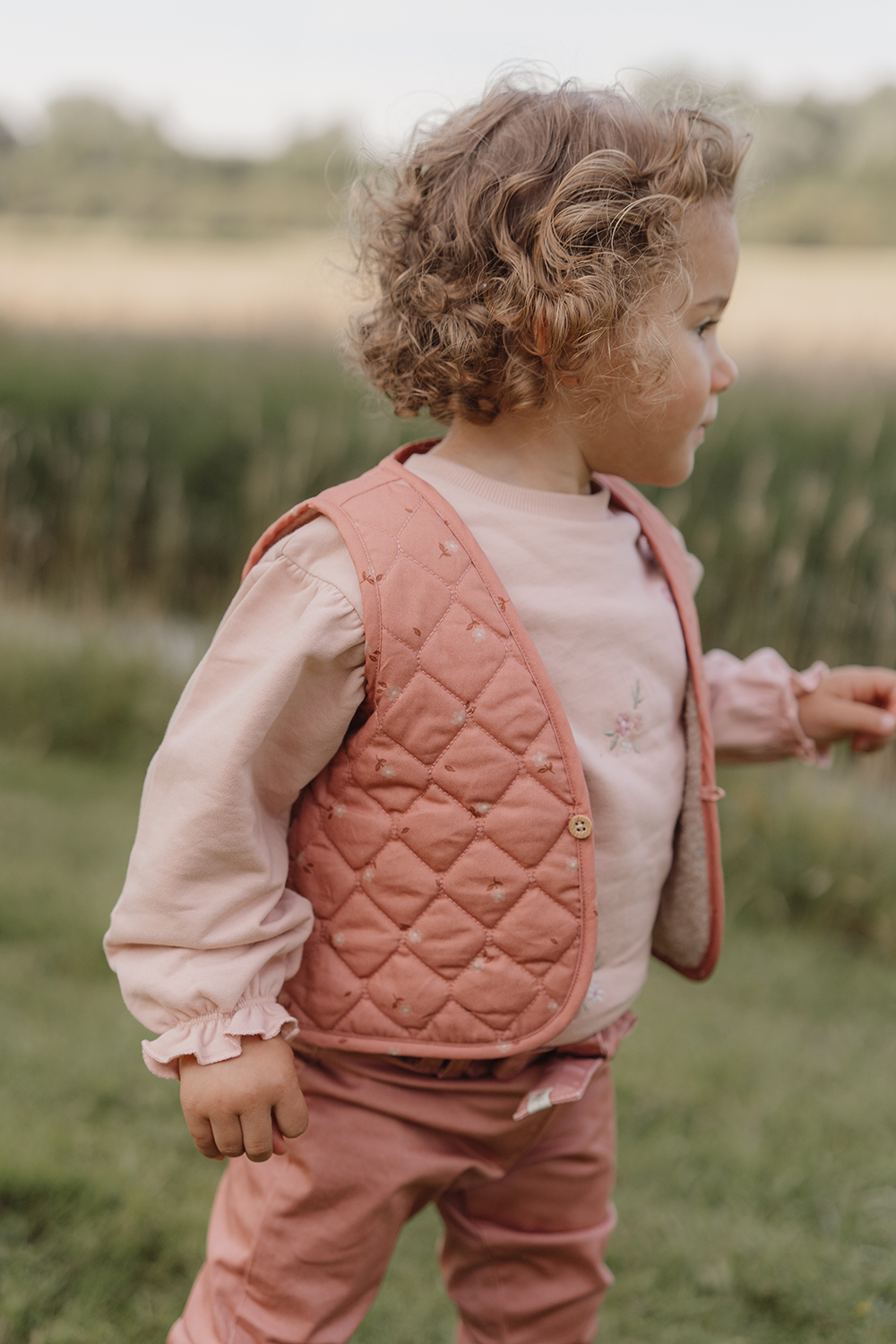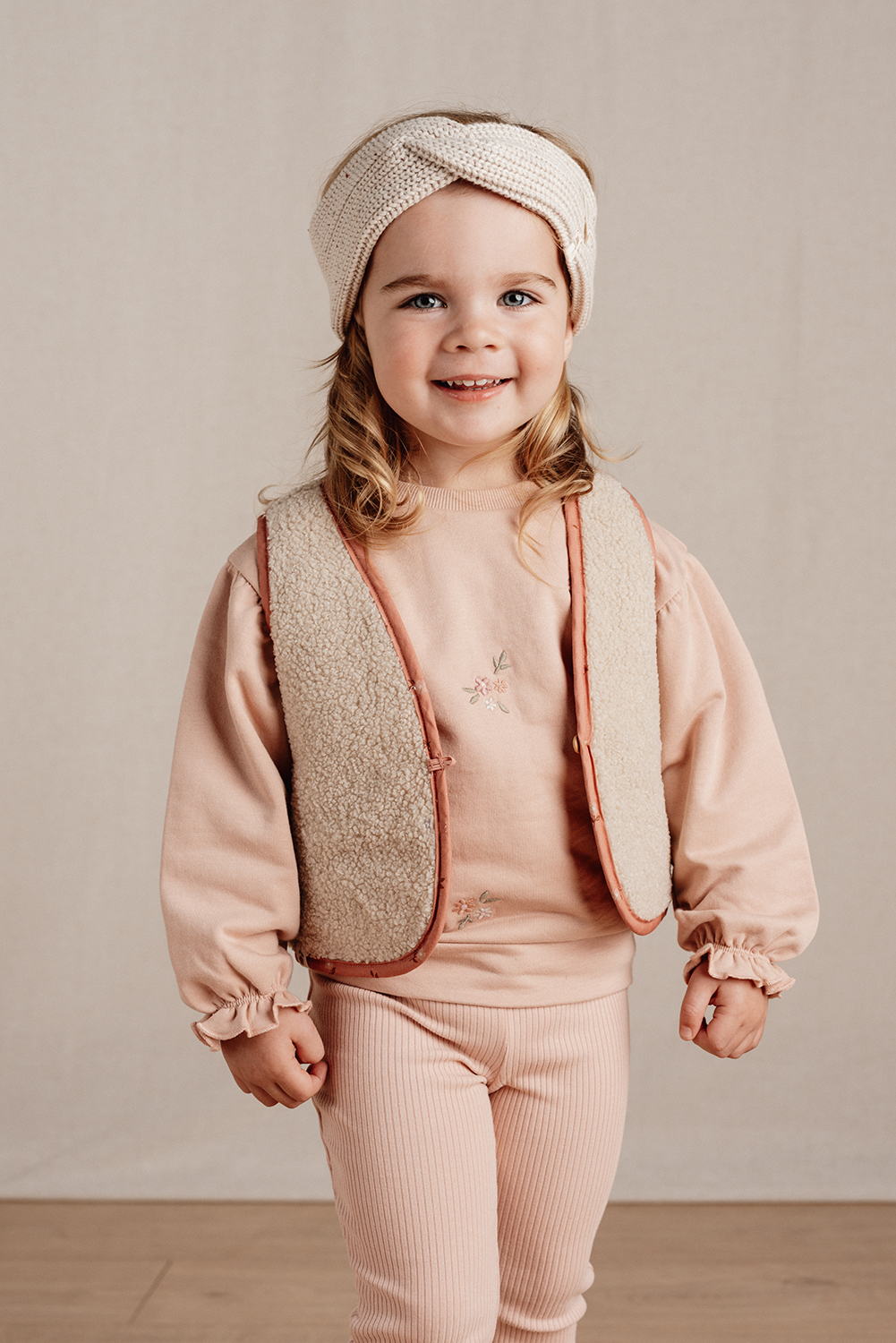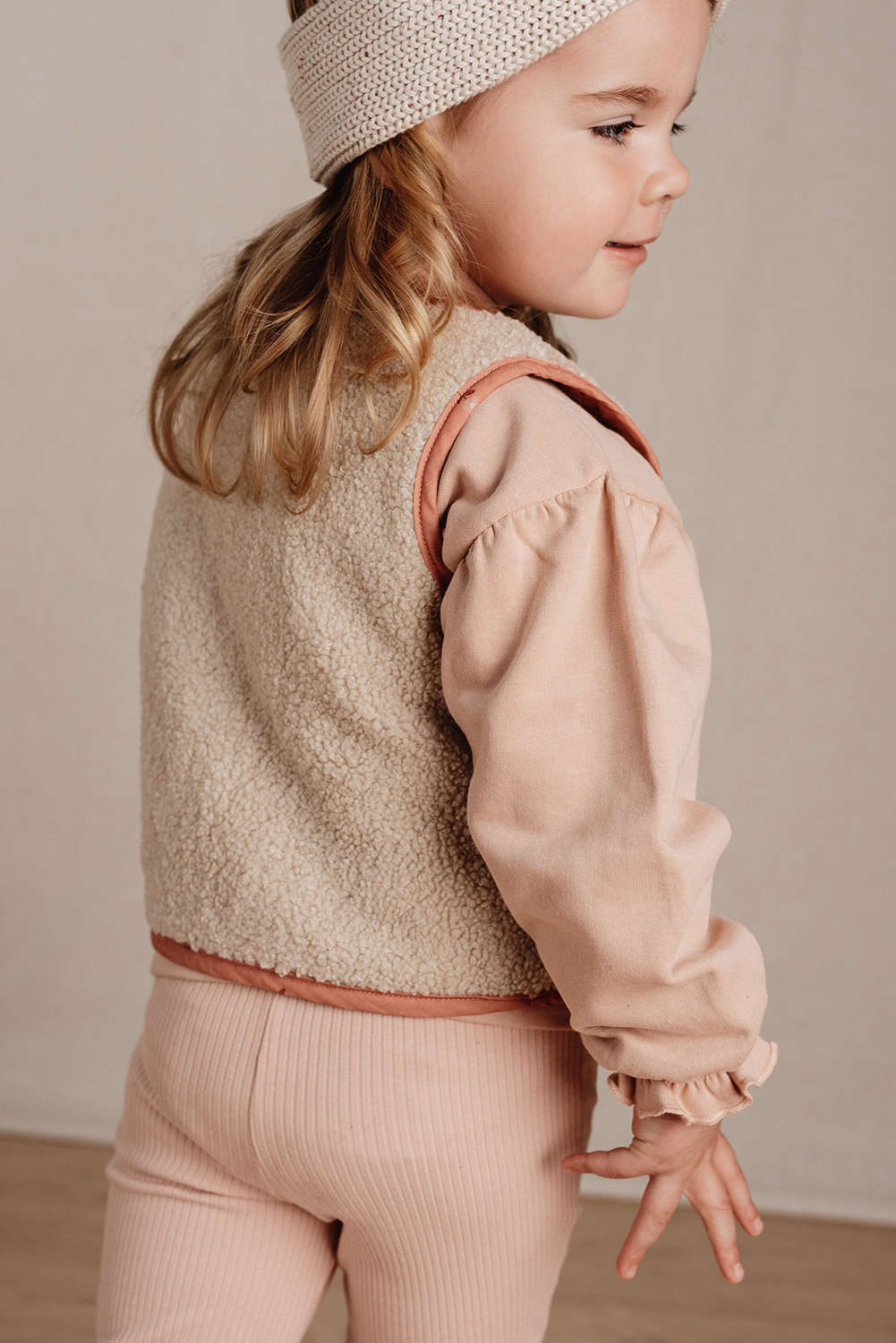 Weste wendbar Blooming Flower / Teddyfell - Little Farm rosa / sand (Gr. 98/104)