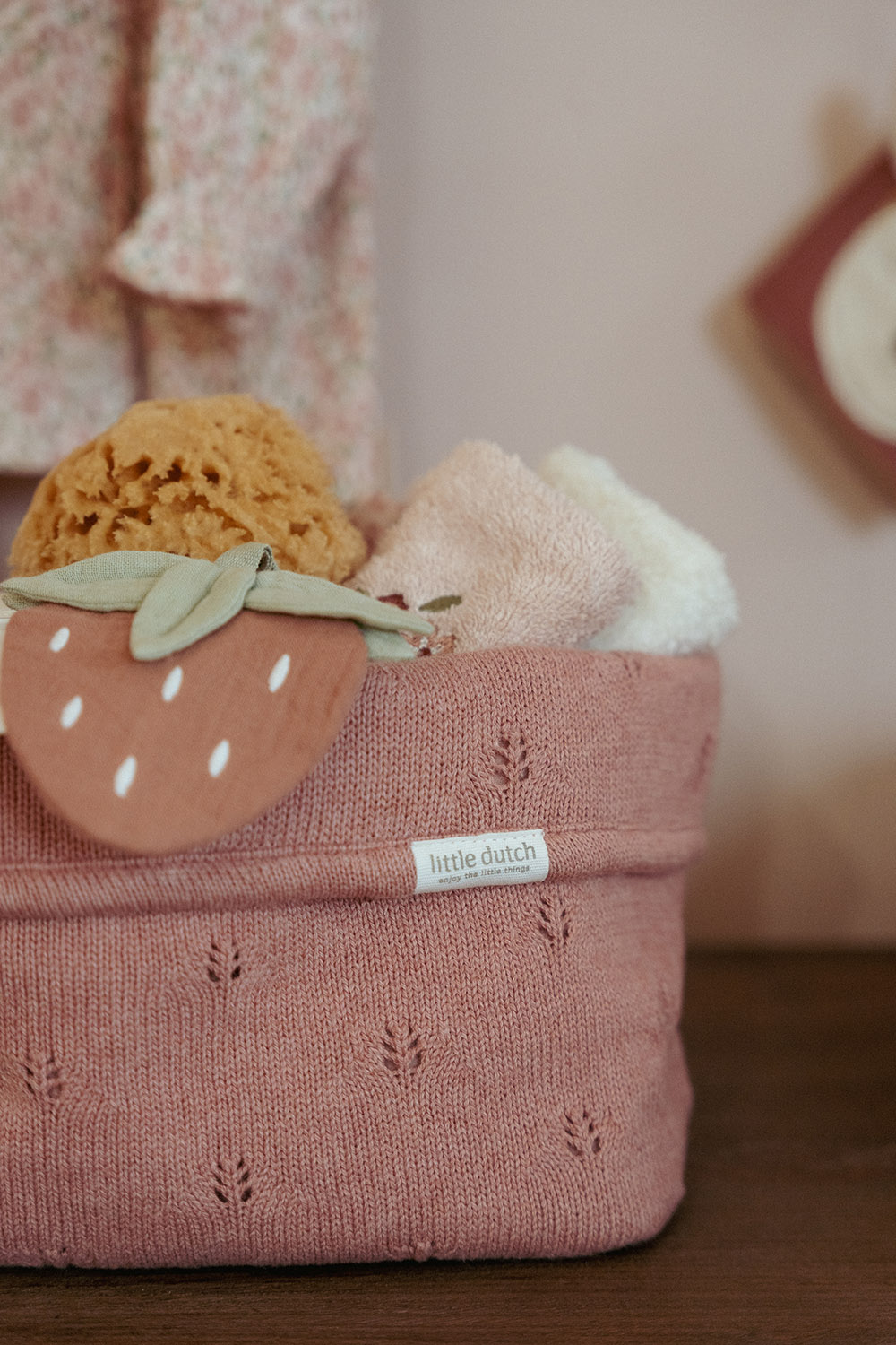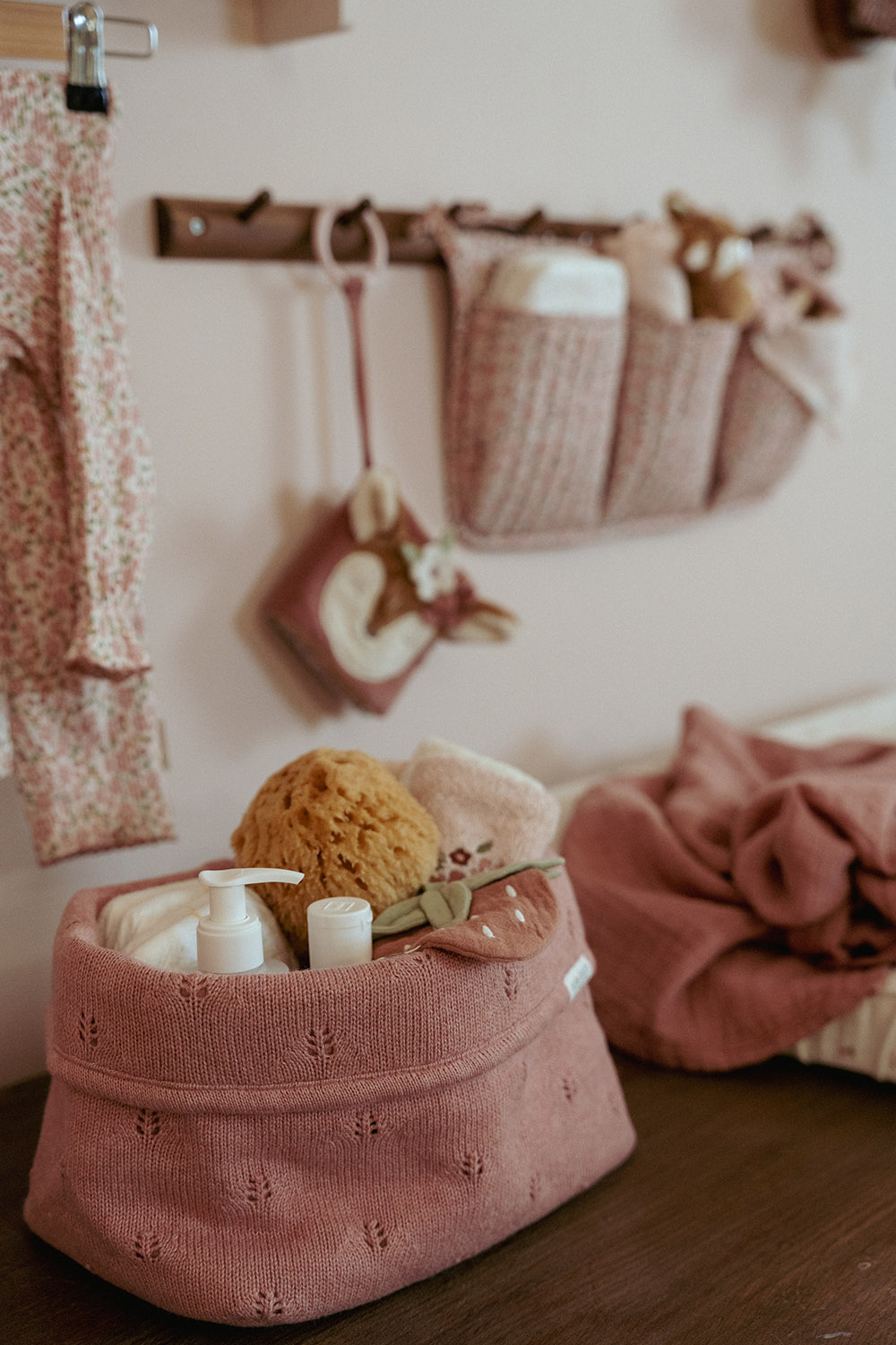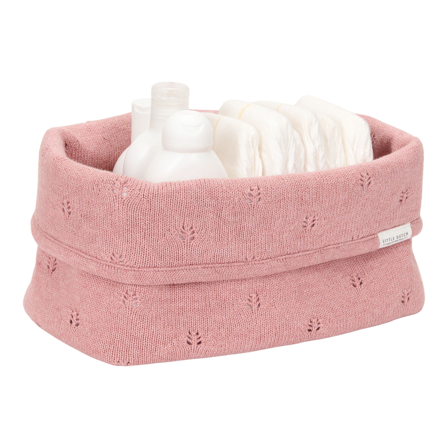 Wickeltischkörbchen gestrickt groß - Pure pink blush