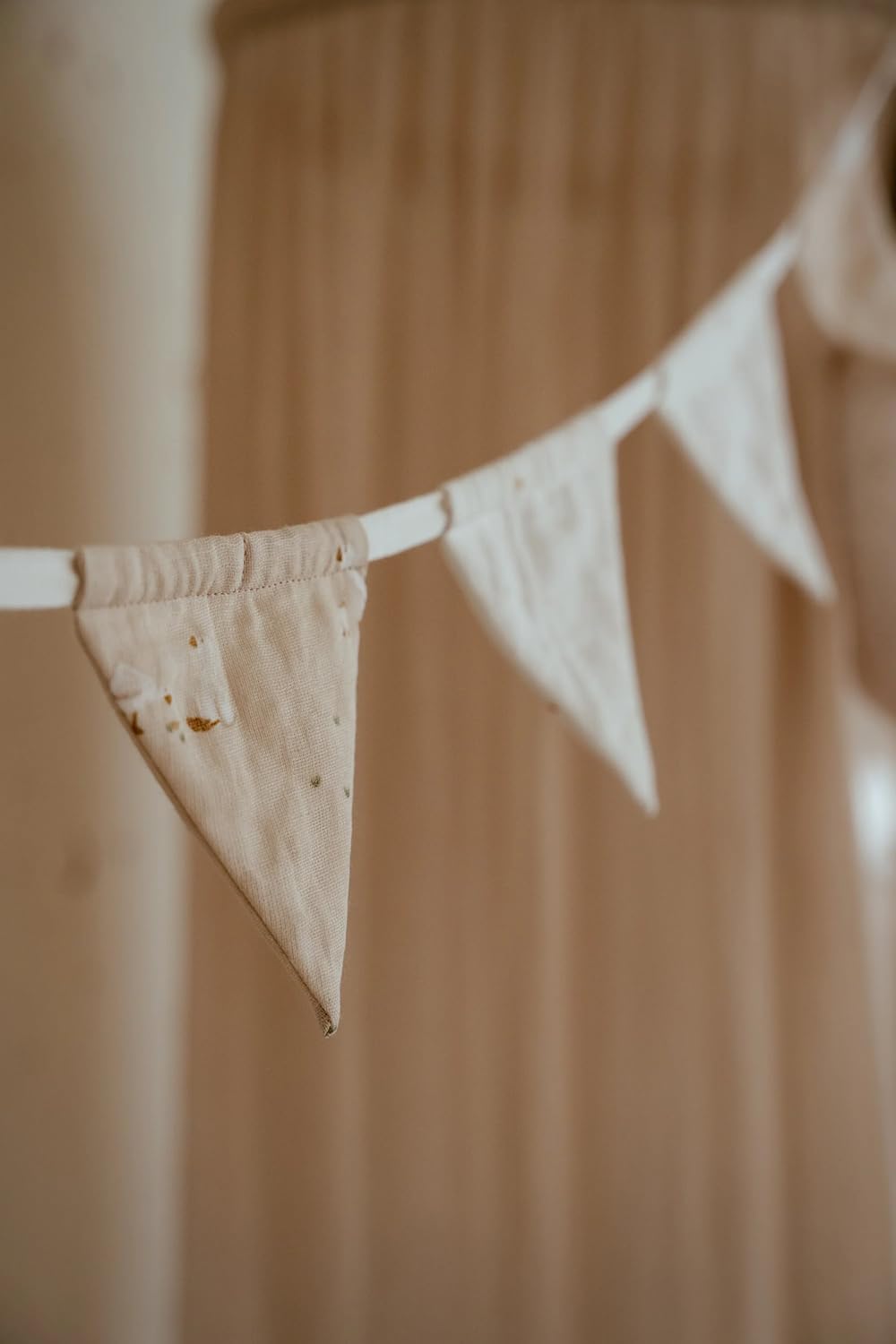 Verschönern Sie das Babyzimmer mit dieser hübschen Girlande aus Fähnchen.