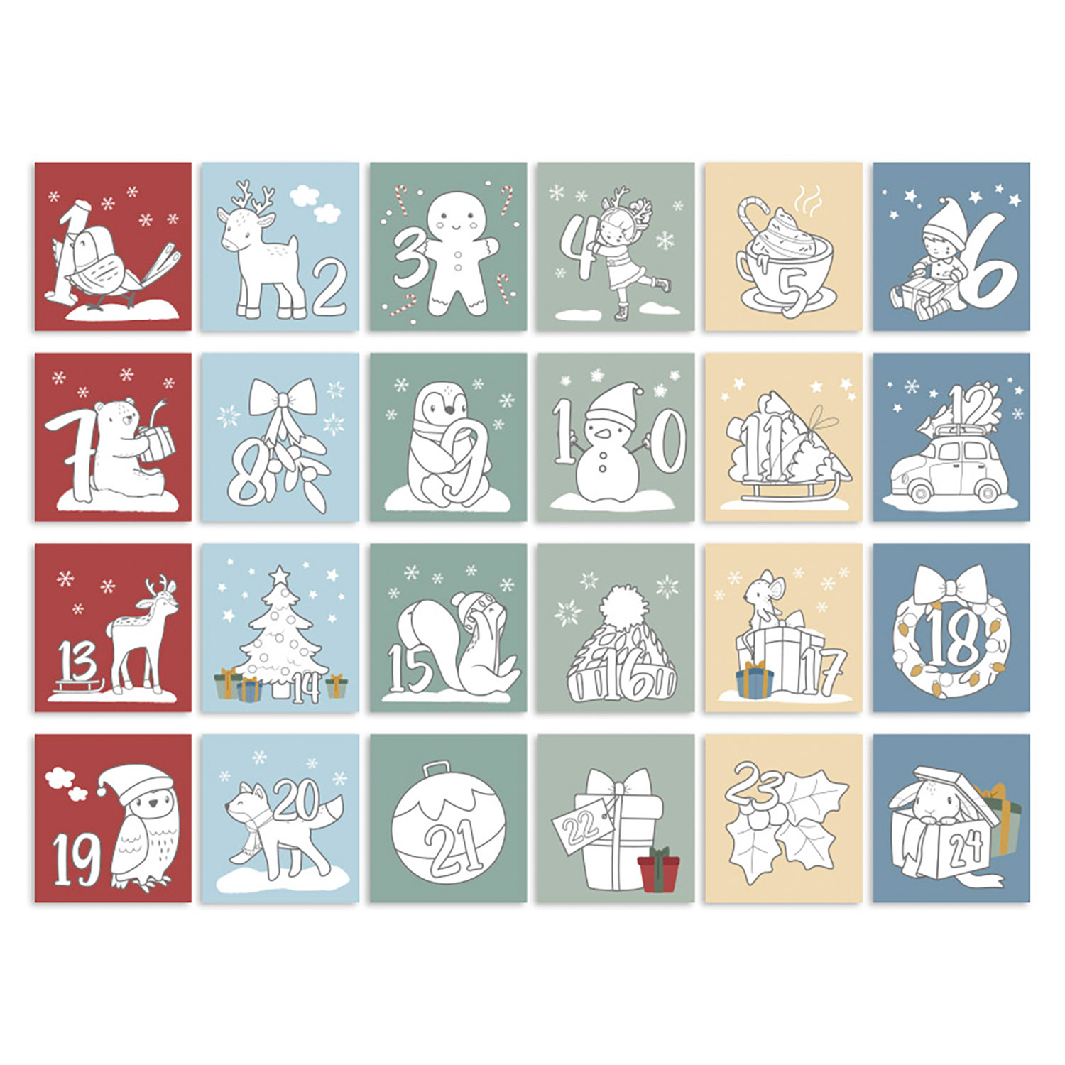Mit 24 einzigartigen und festlichen Motiven bietet dieser Kalender eine unterhaltsame Möglichkeit, in die Weihnachtsstimmung zu kommen.