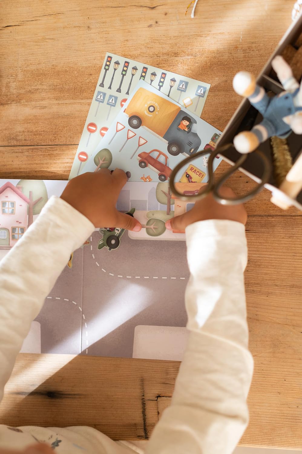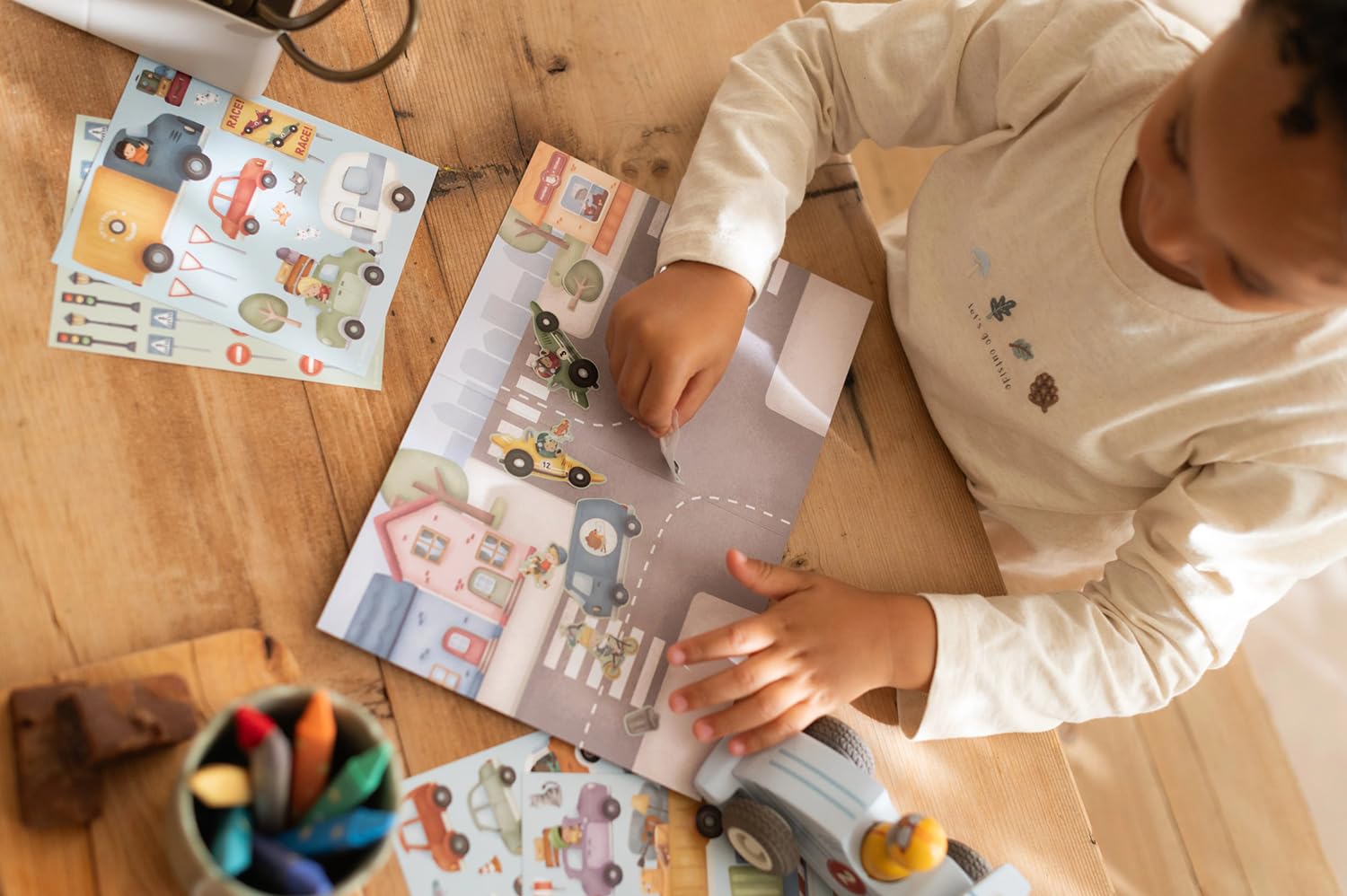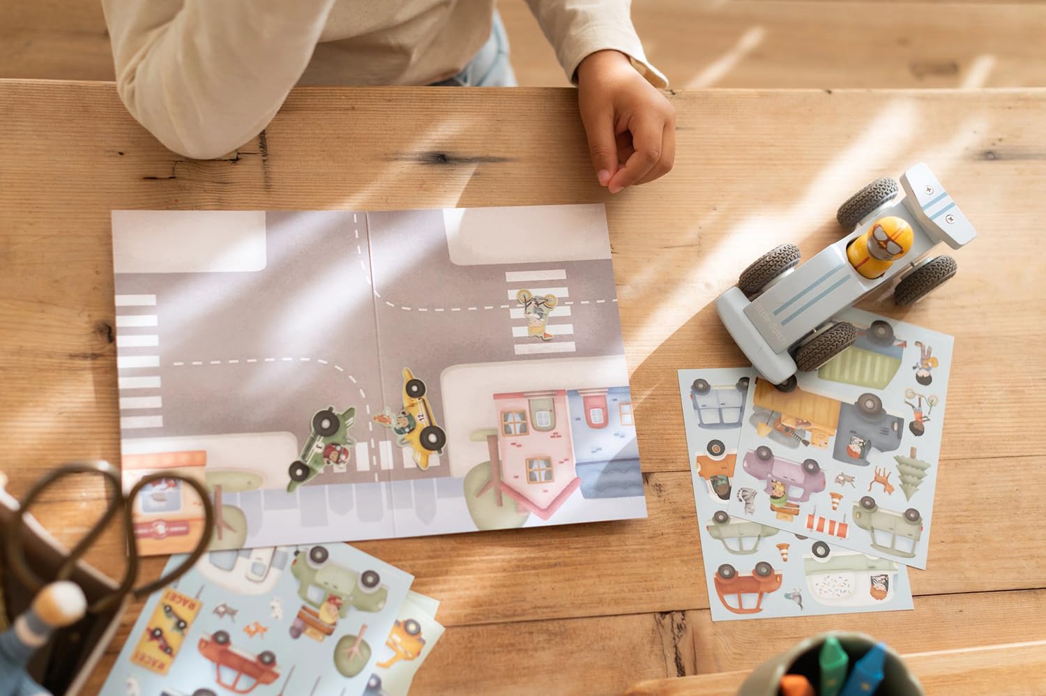Mit mehr als 90 bunten Stickern und einem doppelseitigen Spielhintergrund kann Ihr Kleines endlos schneiden, kleben und Geschichten erfinden.
