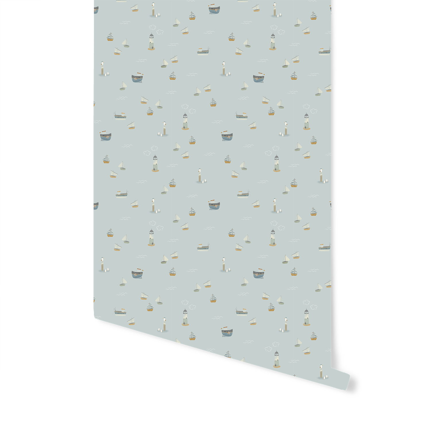 Eine ruhige, nautische Atmosphäre, in der Ihr Kind träumen kann. Diese Tapete ist auf Vliesstoff gedruckt und hat eine Breite von 300 cm und eine Länge von 280 cm.