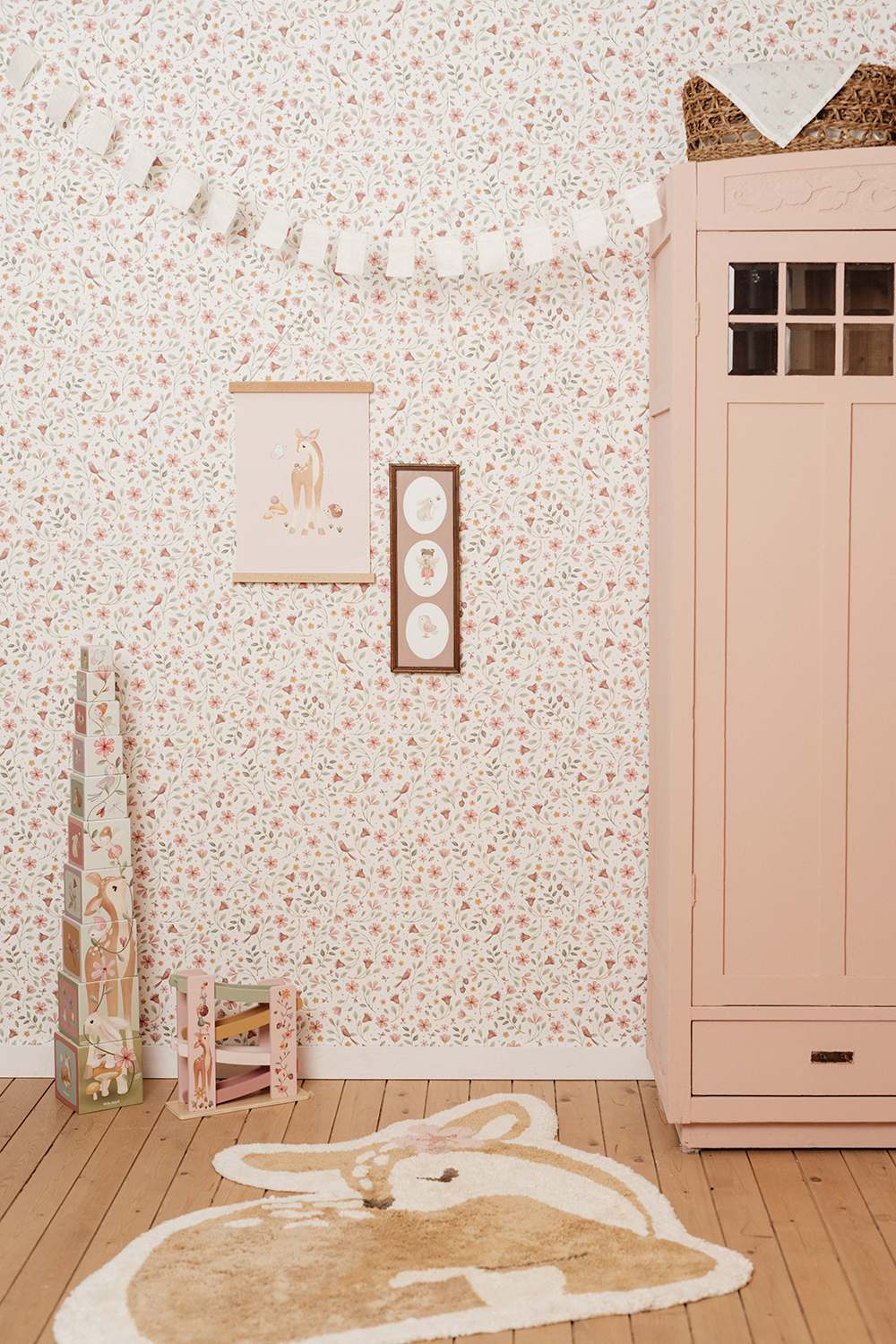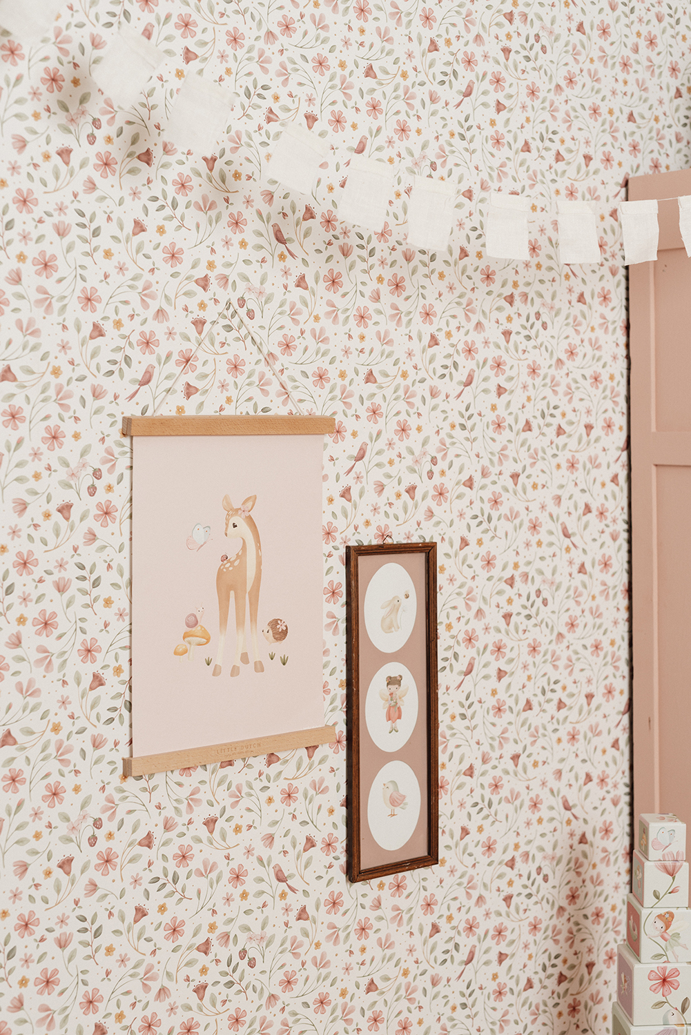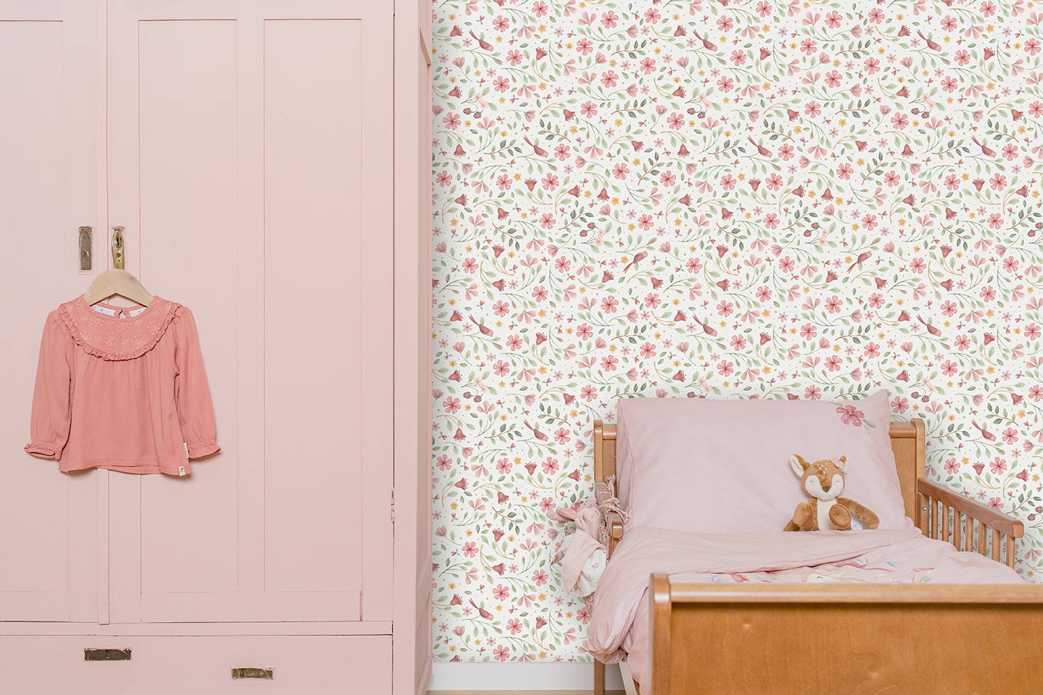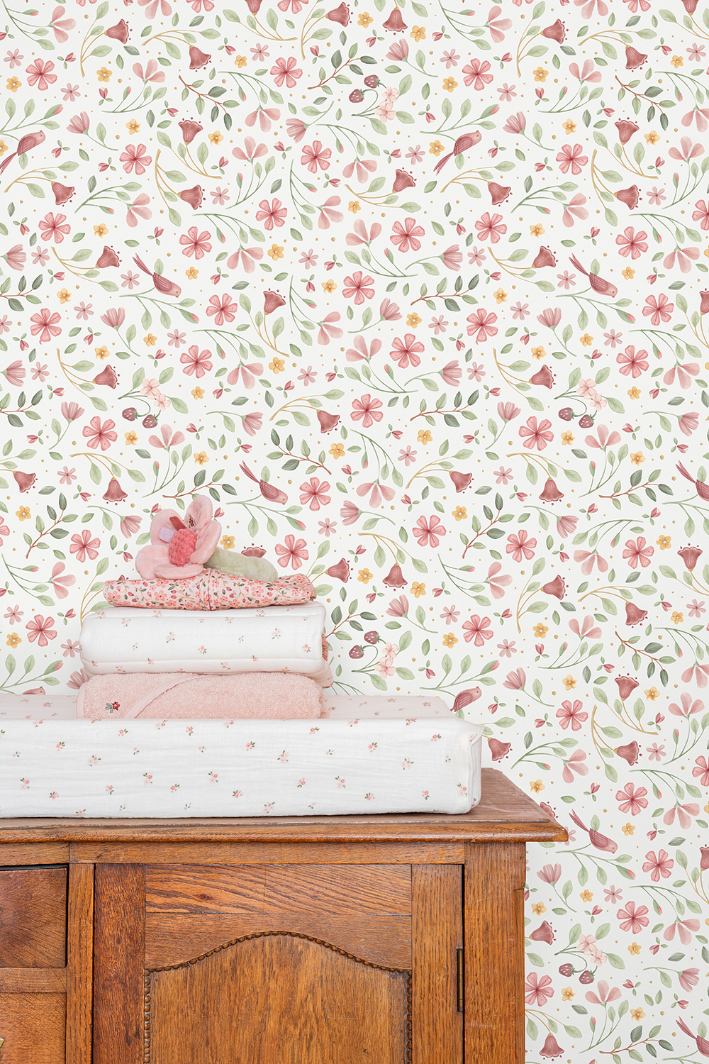 Bringen Sie eine fröhliche Atmosphäre ins Kinderzimmer mit dieser farbenfrohen Vliestapete im Fairy Garden-Thema, mit dem Fairy Wonders-Aufdruck!