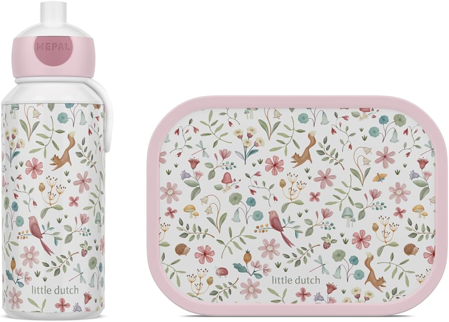 Dieses praktische Set besteht aus einer Pop-up Trinkflasche und einer Brotdose inklusive Bento-Einsatz und Gabel.