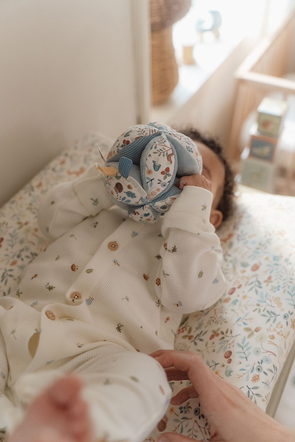 Das süße Dekor von Forest Friends, die leicht zu greifenden Knoten und die verschiedenen Etiketten regen die Sinne an, fördern die Greiffähigkeit und sorgen dafür, dass Ihr Baby im Laufstall beschäftigt ist.