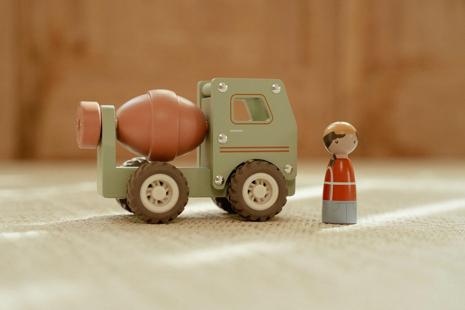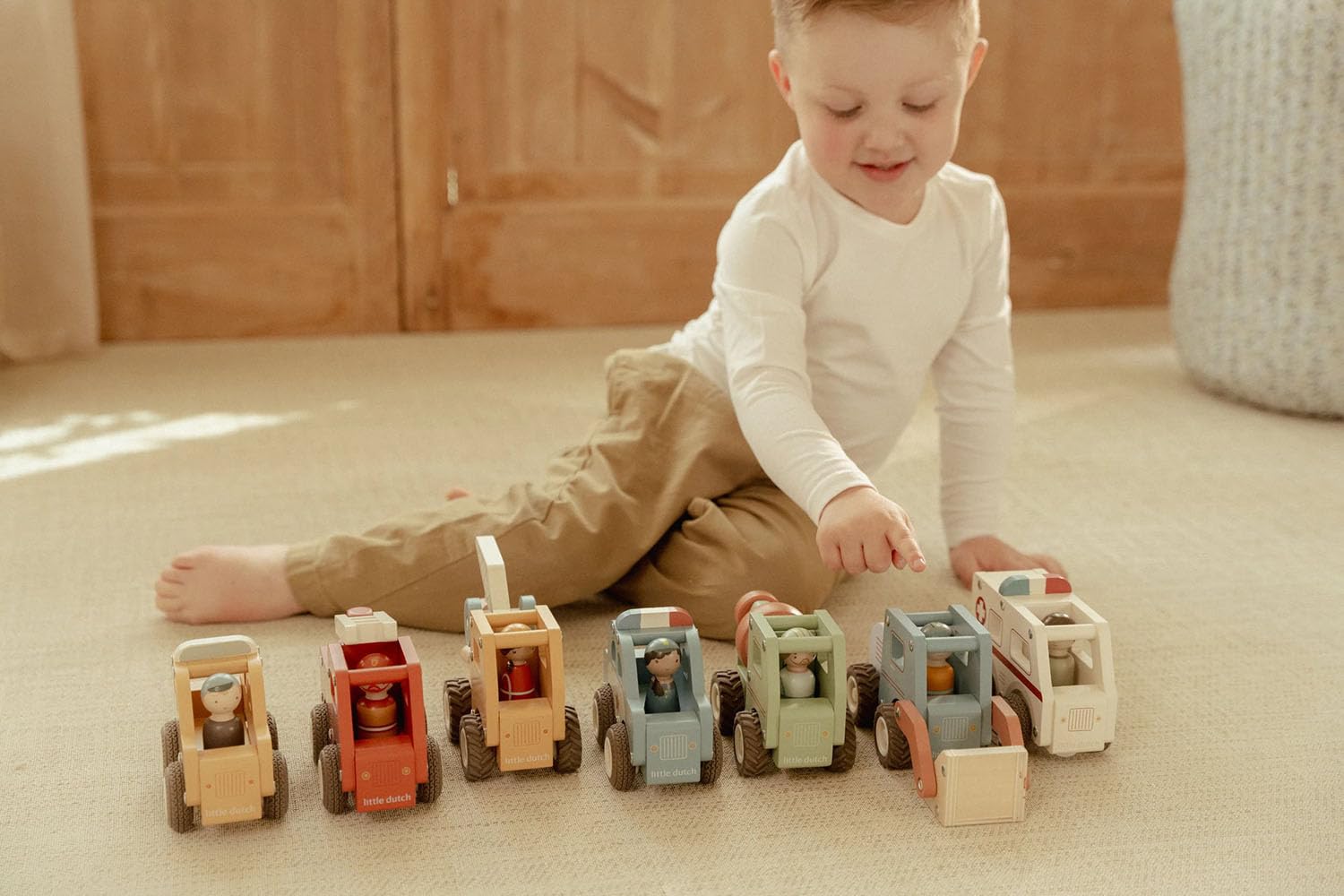Kombiniere es mit dem Holzbagger und dem Kipper für ein komplettes Bauerlebnis.