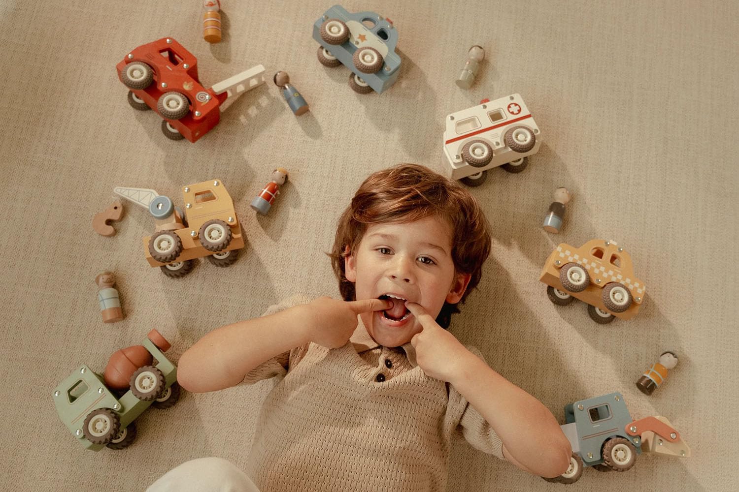 Fertig mit dem Graben? Kombiniere diesen Bulldozer mit den anderen Baufahrzeugen für noch mehr Abenteuer auf der Baustelle!