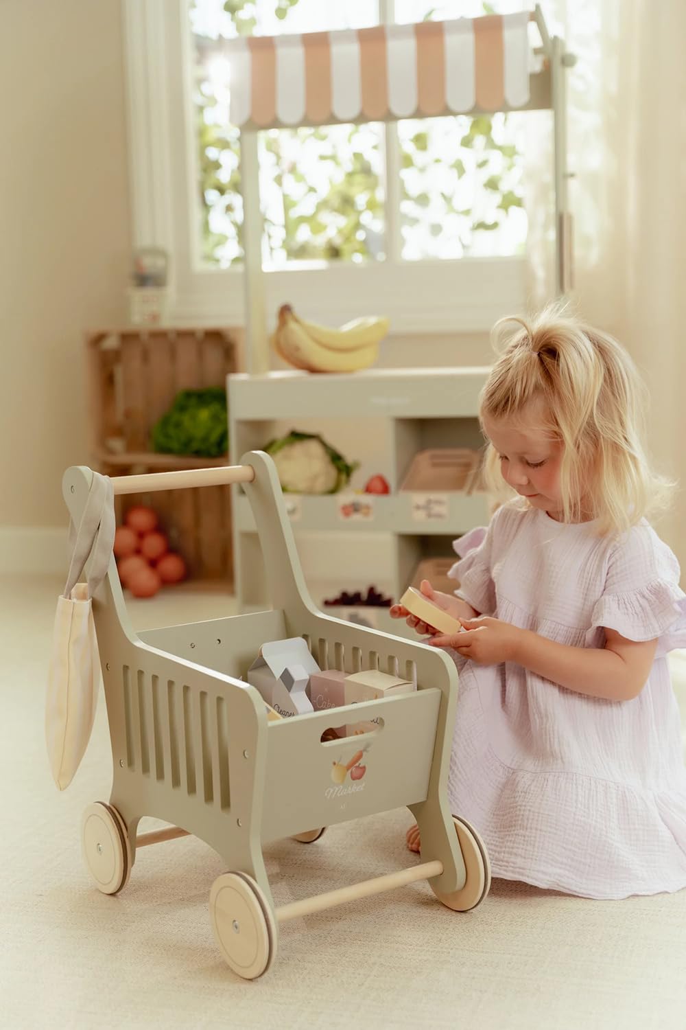 Holz Einkaufswagen mit Zubehör - Essentials mint
