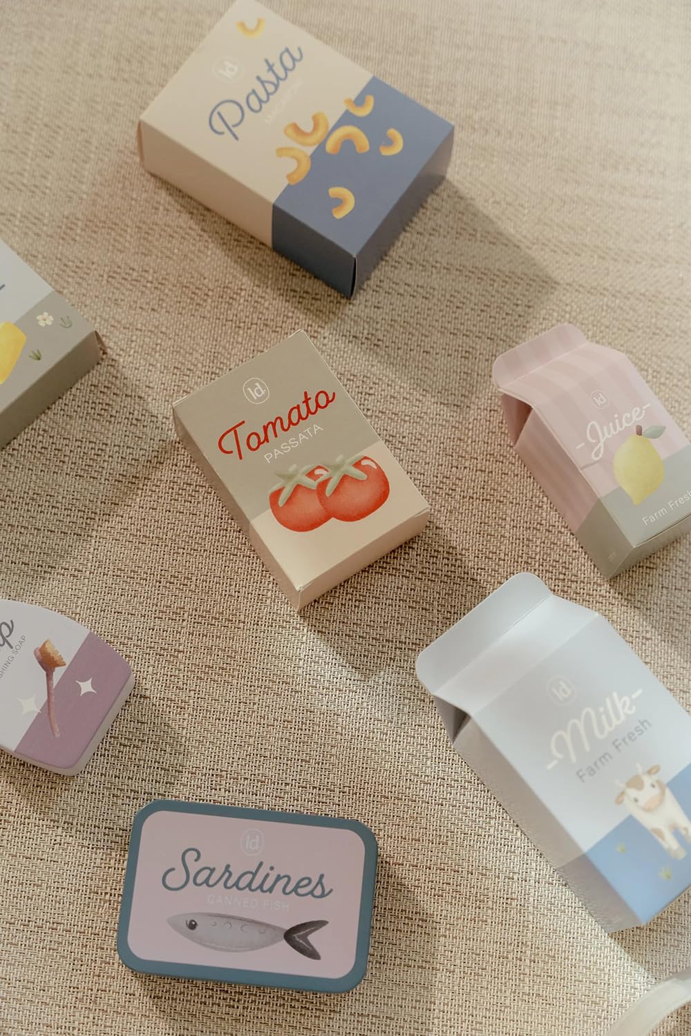 Das Set enthält verschiedene Lebensmittelprodukte und eine Einkaufstasche, damit du sofort loslegen kannst.