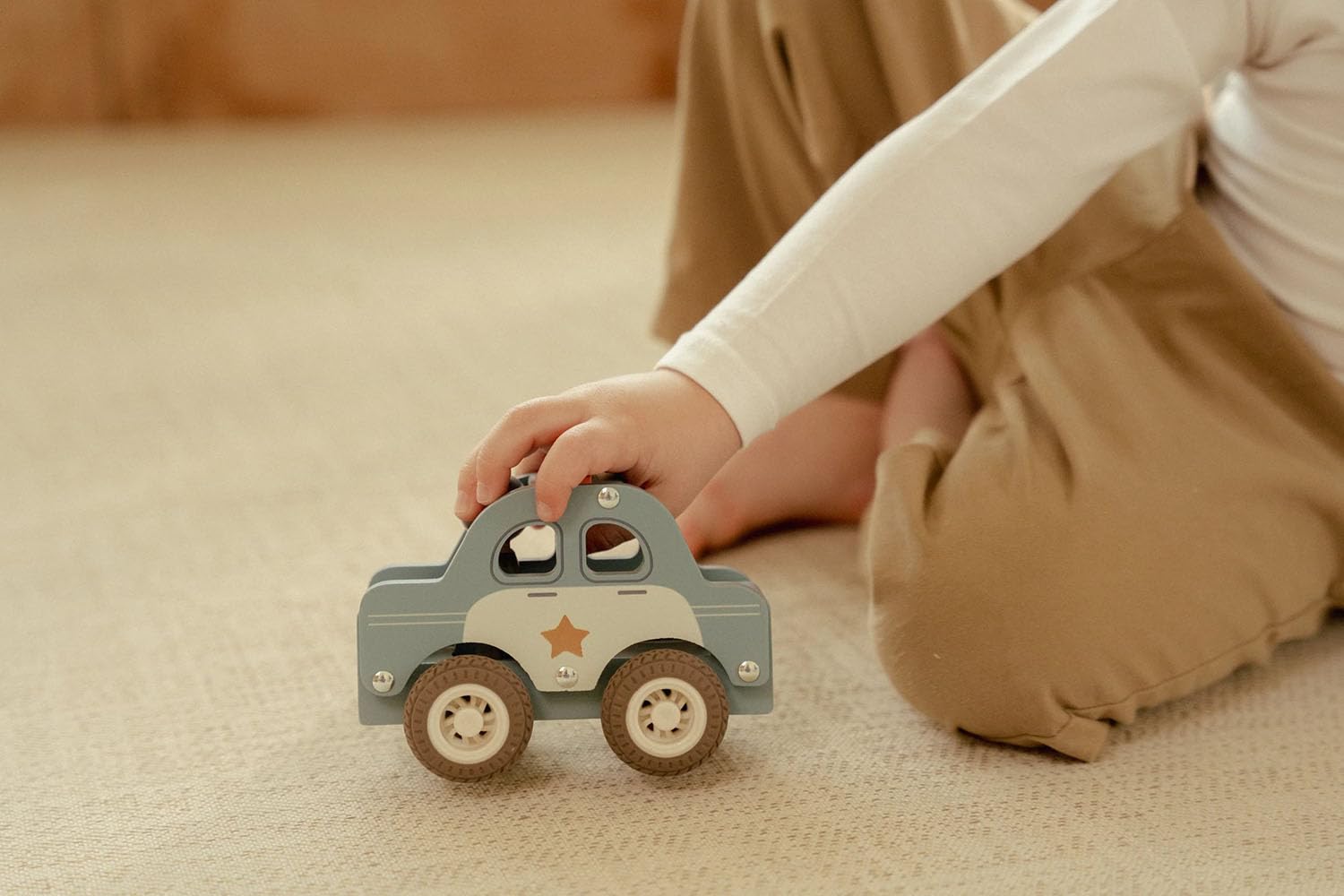 Dieses Polizeiauto-Spielzeug ist perfekt für Rollenspiele und passt hervorragend zur Holz-Polizeistation.